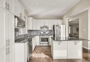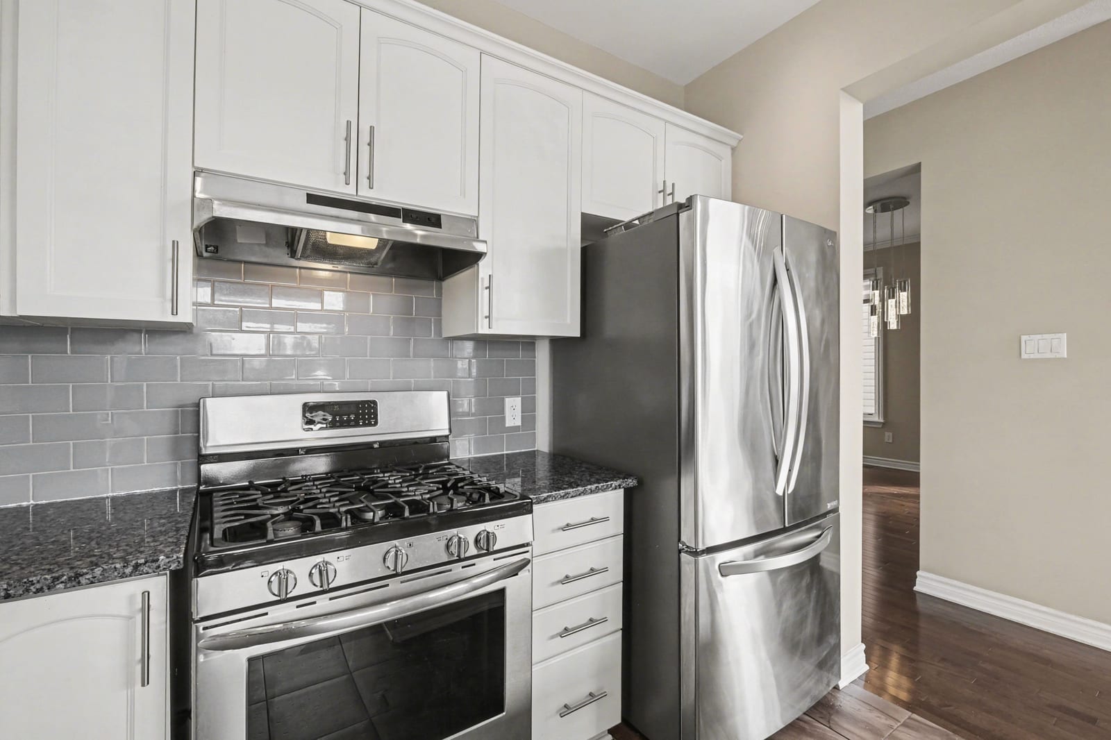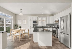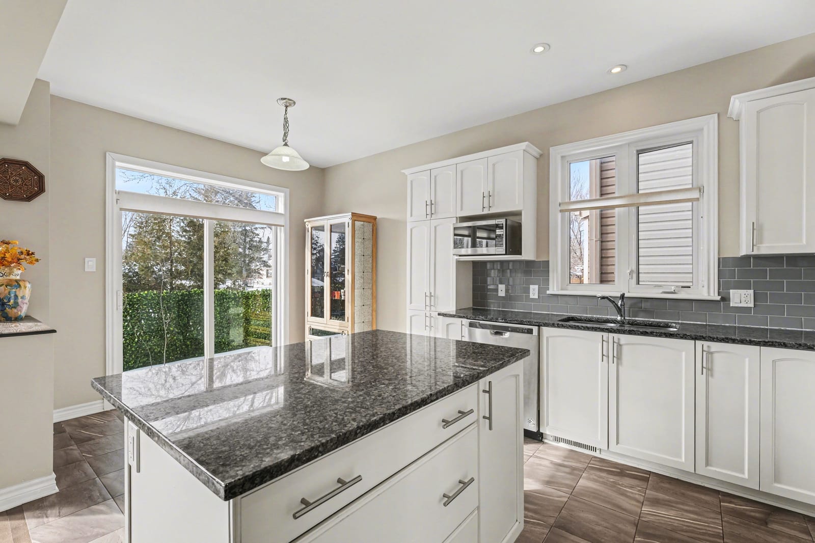 The heart of the home is the kitchen, complete with granite countertops, a centre island, food pantry, and stainless steel appliances, including a gas range. The eat-in kitchen flows seamlessly into the bright family room showcasing vaulted ceilings, a cozy gas fireplace, oversized windows, and beautiful natural light throughout.