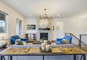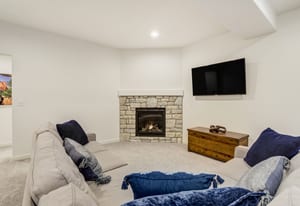 Downstairs, the finished lower level expands the living space with a large great room, a second gas fireplace, two secondary bedrooms with a shared 3/4 bath, plus a private guest suite with walk-in closet and 3/4 bath.