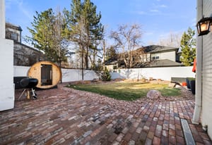 Originally built in 1937 and thoughtfully updated over time, this home blends historic character with modern functionality through a carefully designed addition. Many of the original architectural details remain, now paired with refreshed finishes, updated lighting, and improvements that support today’s lifestyle. The main level offers a variety of gathering spaces that work equally well for entertaining and everyday living. A formal living room with a refreshed fireplace provides a comfortable place to welcome guests, while a separate family room with its own fireplace offers a more relaxed setting. The formal dining room connects to a catering kitchen with wine storage, creating a natural flow for hosting. The primary kitchen features quartz countertops, JennAir stainless steel appliances, and a bright breakfast nook with access to the backyard patios and lawn. A private office and renovated powder bath complete the main floor. Upstairs are four bedrooms, including two primary suites. The primary suite includes a sitting area, a five-piece bath, dual walk-in closets, a private laundry, and a balcony. The second primary bedroom has its own en-suite bath, while two additional bedrooms share a full bathroom. The home includes two lower levels, adding flexibility. The basement within the newer addition can function as a home gym, playroom, or media space. The original basement includes a bedroom, reading nook, full bathroom, and a second laundry area, making it well-suited for guests or extended stays. Additional updates include fresh interior paint, new lighting, multiple laundry areas, and an outdoor sauna. The landscaped front and back yards feature established rose bushes and two raised garden beds with drip irrigation. Located near Cherry Creek, Lowry’s dining and shopping, the neighborhood Farmer’s Market, and the trails along 6th Avenue Parkway, the home offers a balance of classic design and modern livability with convenient access to downtown Denver and DIA