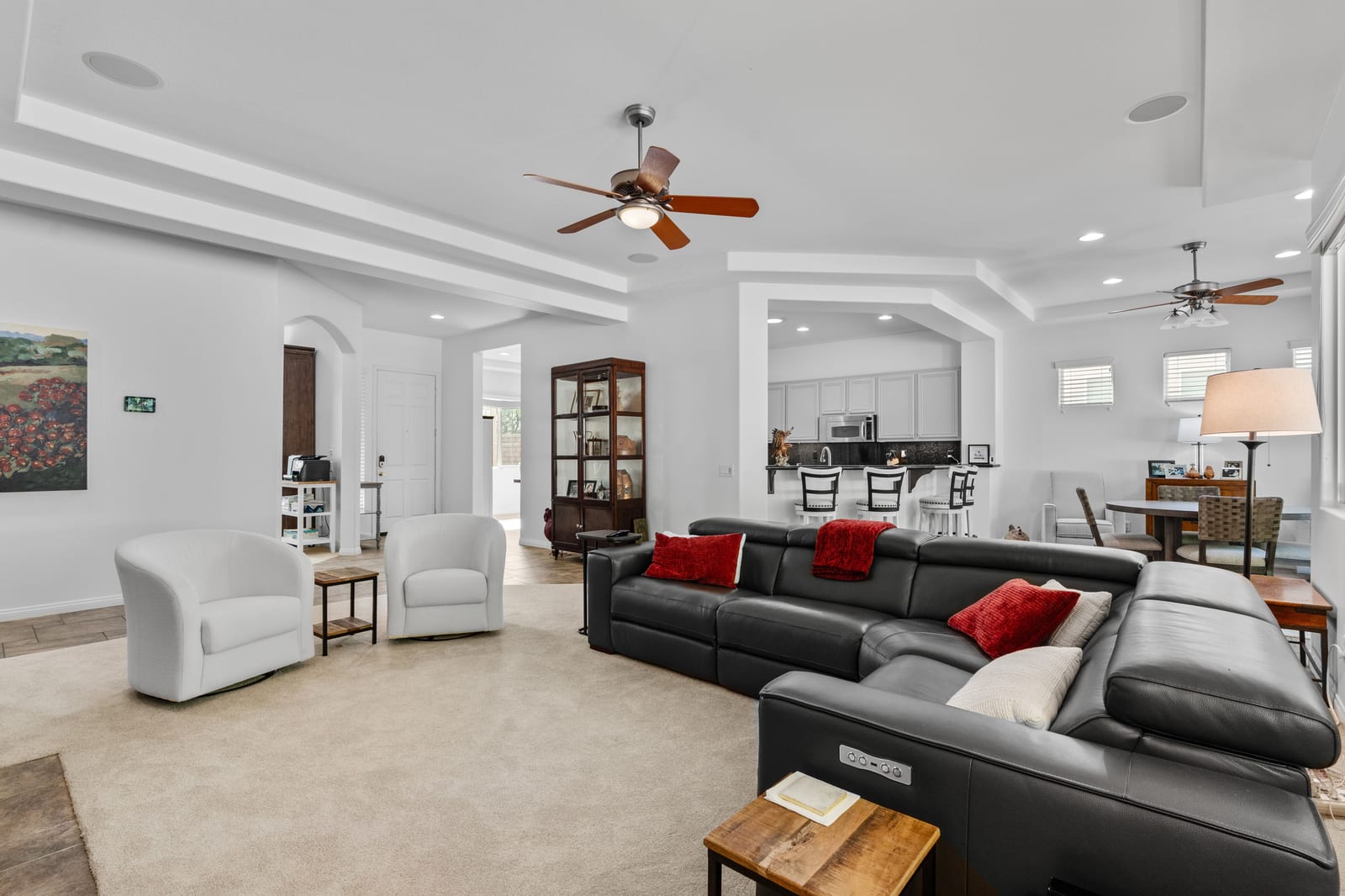 Perfectly positioned within the sought after enclave of La Quinta Del Oro, this beautifully appointed residence offers over 3,000 square feet of refined desert living designed for both ease and elegance. A thoughtfully conceived open floor plan unfolds beneath high ceilings and abundant natural light, creating a seamless connection between living, dining, and entertaining spaces. At the heart of the home, the gourmet kitchen is appointed with stainless steel appliances and generous preparation space, overlooking a spacious great room anchored by a decorative fireplace, ideal for both everyday living and effortless gatherings. The primary suite is a tranquil retreat, complemented by ...