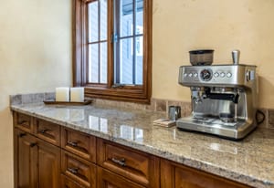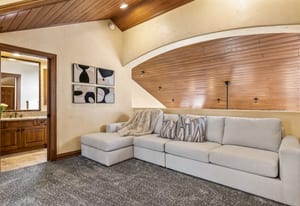 Inside, vaulted tongue-and-groove ceilings and a dramatic moss-rock fireplace anchor the great room, creating a warm and inviting gathering space. Integrated plaster walls, designer wool carpeting, updated flooring, and refreshed kitchen and baths reflect quality throughout. A dedicated coffee station and an open loft, ideal for a family room and study, add comfort and flexibility. Even the attached two-car garage is tiled, a subtle reminder of the craftsmanship that defines this home.
