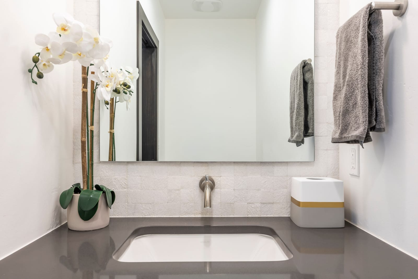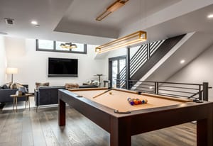 Four levels are easily accessed via private elevator and include a media lounge, billiards/game room, and generous storage. A two-car garage is complemented by two additional covered parking spaces — a rare and valuable amenity in Old Town.