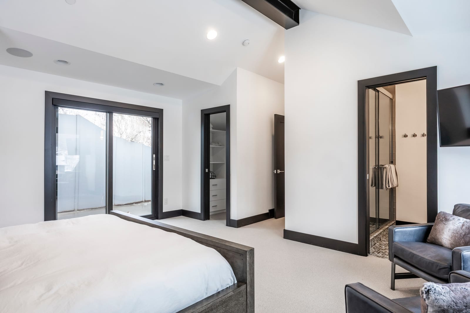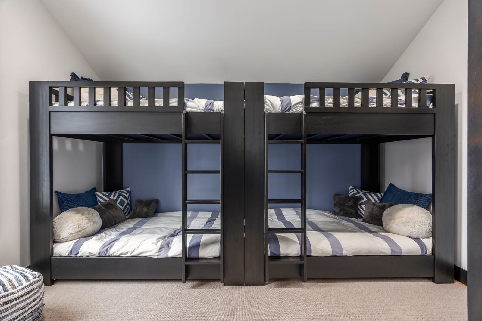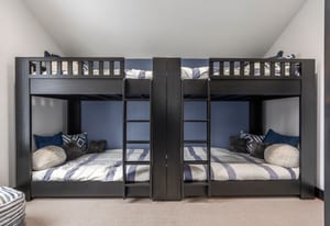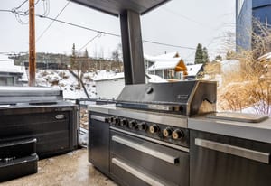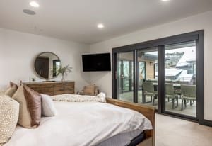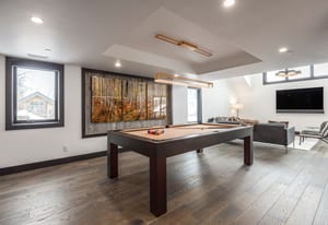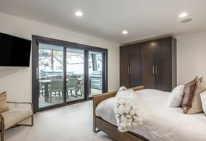 The residence accommodates up to 12 guests with four private ensuite bedrooms and a custom-designed bunk room, creating the ideal retreat for family and friends. Over 1,000 square feet of heated outdoor living space invites year-round enjoyment, seamlessly extending the interiors into inviting outdoor gathering areas.