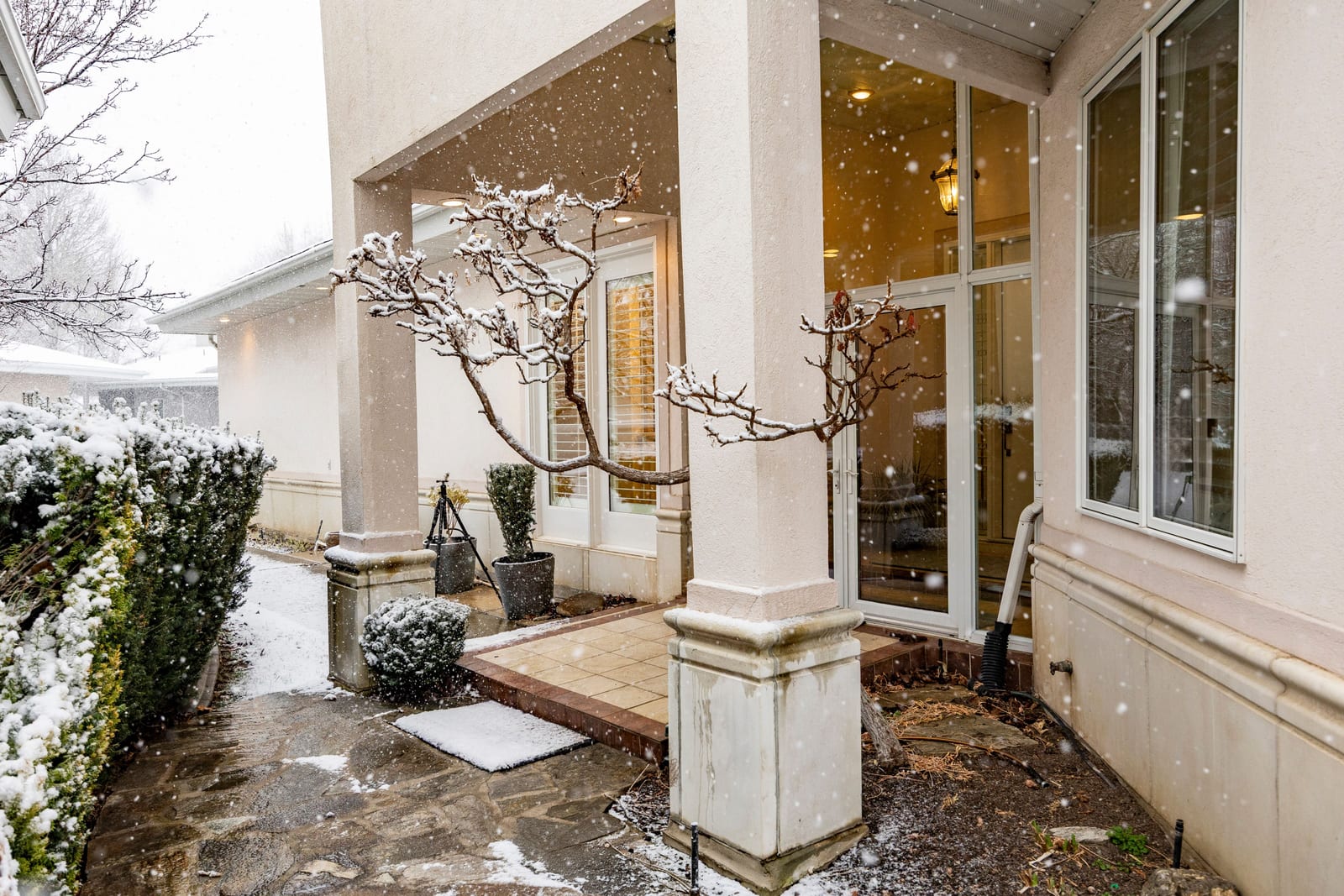 Tucked within a private gated community, 2115 E. Connor Park Cove offers refined living with thoughtful design at every turn. From the moment you enter the vestibule, you’re greeted by soaring vaulted ceilings and stunning stained glass windows that bathe the living spaces in warm, colorful light. Designed for both elegance and longevity, the home features an elevator for effortless age-in-place living. The kitchen showcases custom cabinetry by Granite Mills, granite countertops, double ovens, a warming drawer, and a striking statement hood. A perfectly placed kitchen sink overlooks the quiet cul-de-sac, offering a charming view of daily comings and goings. Plantation shutters, skylights, and timeless finishes elevate the ambiance throughout. The spacious main-level primary suite is a true retreat, offering three walk-in closets, a bathroom with heated tile floors, a zero-entry steam shower, and extensive cabinetry for exceptional storage.The main level has been thoughtfully expanded with an enclosed porch, creating additional flexible living space, and includes a dedicated office along with a well-appointed laundry room featuring a utility sink for added convenience. Downstairs, the expansive lower level feels bright and welcoming with two more bedrooms framed by rock window wells that bring in natural light and pleasant outdoor views. A large family room with extensive built-ins, a kitchenette for guests or in-law living, and two beautifully remodeled bathrooms featuring marble countertops, heated floors, zero-entry glass showers, and heated towel racks. Additional highlights include two water heaters, two furnaces, new thermostats, a water softener, a safe, a storage room, and a tiled garage floor with built-in cabinetry to keep the space looking sharp year-round. The HOA provides exceptional ease of living, covering lawn mowing and trimming, exterior water and sprinkler maintenance, snow removal and shoveling, as well as front landscaping and gate maintenance, allowing you to simply enjoy the home. This great location has easy access to all the shops & restaurants in Millcreek & Sugar House. It is right around the corner from a local favorite, Cactus & Tropicals, Sugar House Park and a quick commute to the Utah Canyons to hike, bike & ski and the Salt Lake International Airport.