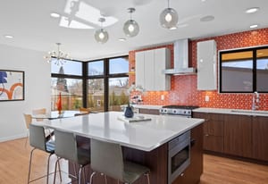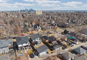 This architecturally refined 1939 residence, fully renovated in 2016, sits on a rare double lot just two blocks from Sloan’s Lake and captures beautiful western mountain views. Enjoy exceptional walkability to West Highlands and Highlands Square, with the vibrant 32nd Street corridor just moments away, offering boutique shopping, cafés, and acclaimed dining. The open-concept main level blends craftsmanship and functionality, anchored by a bright kitchen with custom cabinetry, quartz countertops, and stainless steel appliances. The adjoining living and dining areas are filled with natural light and centered around a gas fireplace, creating an inviting space ideal for both everyday living and entertaining. These spaces overlook the private backyard, enhancing the home’s indoor-outdoor connection. A main-floor bedroom or office and a full bathroom complete this level. The upper level features a private primary retreat with vaulted 12-foot ceilings, dramatic floor-to-ceiling windows, and a spacious deck showcasing stunning western mountain views and sunsets. The suite includes a large walk-in closet and a spa-like five-piece bath with a soaking tub and Euro-glass shower. This level also offers an additional bedroom suite with a full bath, oversized walk-in closet, and a convenient laundry room. The finished basement includes a spacious media/family room with surround sound, a conforming bedroom, and a full bathroom. Outside, a covered patio overlooks a newly fenced backyard with ample space for outdoor entertaining and activities. Outside, a spacious covered patio overlooks a newly fenced backyard with plenty of room for outdoor activities and entertaining. Completing the property is an oversized detached two-car garage. This thoughtfully renovated four-bedroom, four-bathroom home offers timeless character, modern comfort, and an exceptional Sloan’s Lake location.