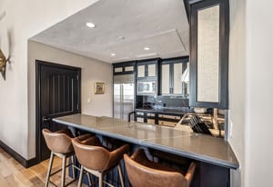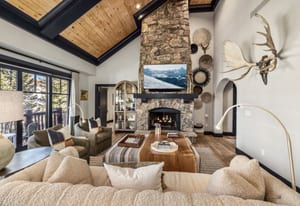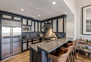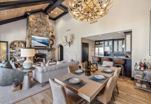 alpine scenery. The gourmet kitchen is designed for both function and style, featuring top-tier appliances, granite countertops, and ample space for entertaining.