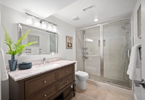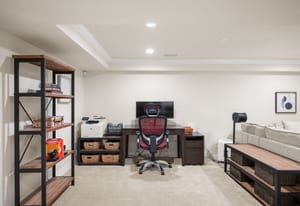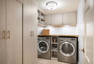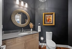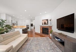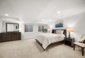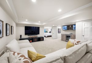 The professionally finished lower level offers a media room, ample storage, spacious third bedroom with walk-in closet, and beautifully appointed dry bar with Taj Mahal quartzite countertop & Sub-Zero beverage fridge; Extended living space ideal for movie nights, guests & home office.