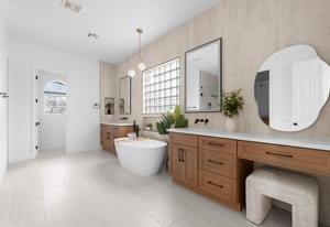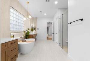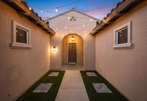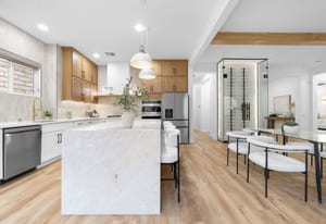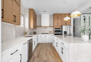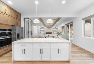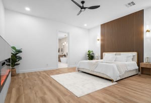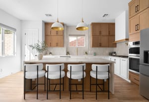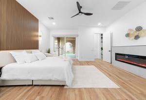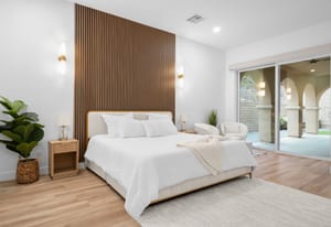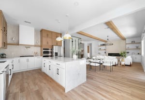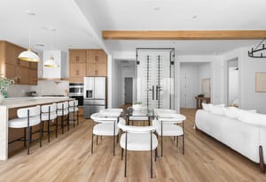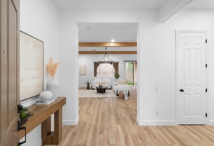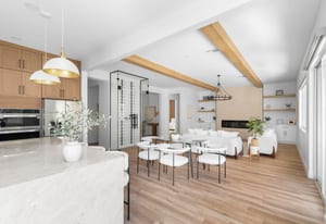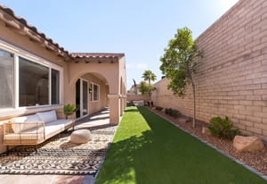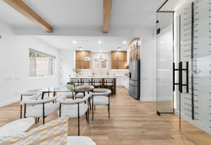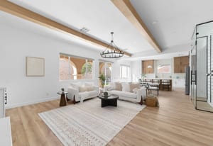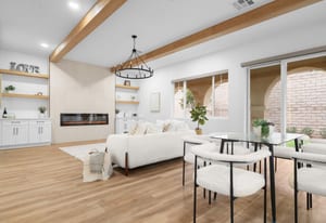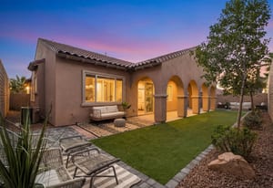 A beautifully reimagined single-story home blending modern farmhouse charm with clean, contemporary finishes, and elevated design. Soaring ceilings, exposed wood beams, luxury vinyl flooring, and a statement chandelier. Open living space that offer seamless flow between the living room, dining room, and kitchen. Oversized windows and sliding doors flood home with natural lights, creating a bright, airy ambiance throughout. The fully renovated kitchen features warm oak cabinetry, sleek waterfall island with natural quartzite countertops, stainless steel appliances. A custom glass-enclosed wine display adds sophisticated focal point and a touch of luxury. Primary suite offers a peaceful retreat with spa-inspired finishes, dual closets, and sliding door offer effortless indoor-outdoor connectivity. Step outside to a private, wraparound covered patio, offering space and seclusion. Located in a desirable gated community in Summerlin West, top rated schools, parks, dining, and shopping.