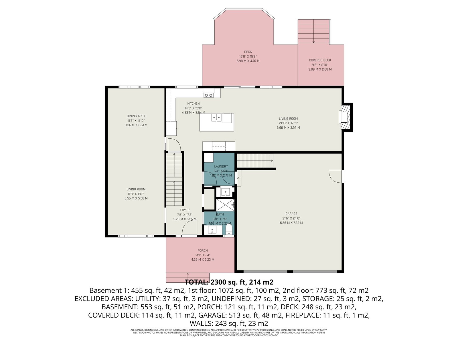 - 2 main floor living areas