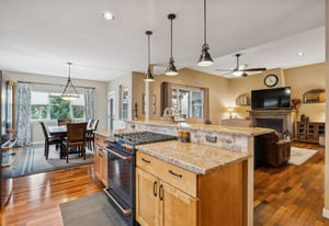 Tucked into one of West Loveland's most peaceful lake-side enclaves, 613 Cove Drive delivers a rare combination of luxury, privacy, and true Colorado living. Positioned directly across from Bodecker Reservoir, the home enjoys calming water views and unforgettable sunrise color. An HOA-only dock sits just steps from the front door, while the protected wooded corridor behind the property creates a secluded backdrop filled with deer, elk, raptors, and even nesting eagles-best enjoyed from the outdoor fireplace. Inside, the home refined with rich Brazilian walnut flooring, thoughtful architectural touches, and an open layout designed to capture natural light. The beautifully appointed kitchen features newer Cafe appliances and opens seamlessly to the dining area and great room, where a striking fireplace and expansive windows frame the serene outdoor setting. The main-level primary suite is crafted for long-term comfort, offering a spacious retreat with its own fireplace, a spa-inspired bath, and a generous walk-in closet. A second bedroom and full bath on the main floor provide ideal guest accommodations. Upstairs, both the lofted living area and bedroom showcase sweeping views of the lake and adjacent park, complemented by a walk-in closet and full bath. The finished basement extends the home's versatility with a welcoming lounge, gas fireplace, bar area, pool table space, and a large flex room. A luxurious steam-shower bath with a soaking tub adds a spa-level touch. More than 1,000 sq ft of insulated, conditioned unfinished space offers exceptional storage or future expansion potential. For car enthusiasts or anyone who values top-tier utility, the garage is unmatched: heated and insulated with epoxy floors, hot/cold water sink, a Level 2 EV charger, and dedicated 50-amp, 30-amp, and 20-amp RV power. With four fireplaces, premium finishes, and a location, this home offers a lifestyle rarely found in Loveland-luxury living with nature at your doorstep.