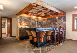 Four additional bedrooms are thoughtfully situated across the main and lower levels. The lower level is designed for recreation and relaxation, featuring a theater room, gaming area, bar. A spa room with access to the grand forest terrace is also on the list.. An oversized three-car garage, along with unfinished wine and storage spaces, provides ample room for all your mountain lifestyle essentials.