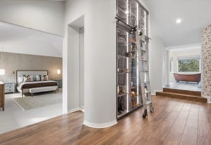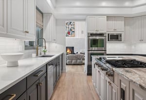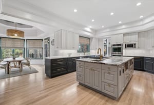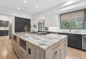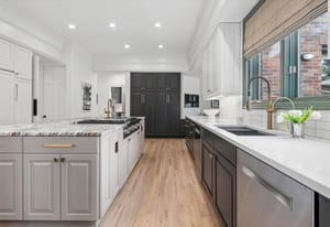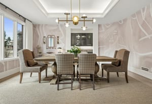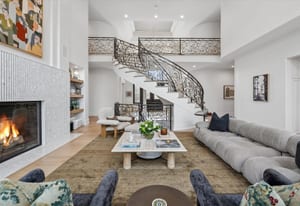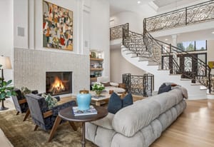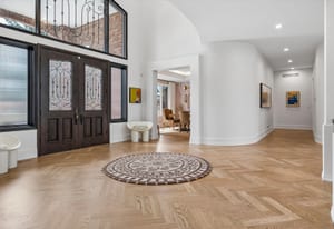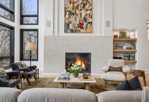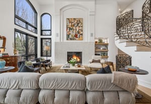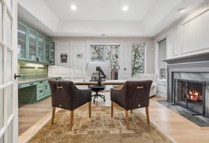 The main level showcases premium white oak hardwoods, custom built-ins, designer wallpaper, and four gas fireplaces—including a striking Anne Sacks terrazzo feature fireplace. A fully renovated chef’s kitchen offers natural stone countertops, updated cabinetry, dual dishwashers, dual refrigerators, wine storage, water filtration, and top-tier appliances including Viking, Sub-Zero, KitchenAid, and Bosch. Upstairs, a rebuilt white oak staircase with custom wrought-iron railings leads to beautifully appointed bedrooms with designer window treatments and motorized blinds. Spa-inspired bathrooms feature Anne Sacks tile, marble vanities, and Kohler and Kallista fixtures. Each bedroom is spacious and unique each with an en-suite bathroom. The walk-out basement retreat includes a steam room, sauna, and a theater room.
