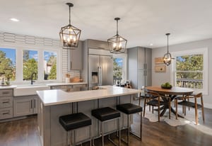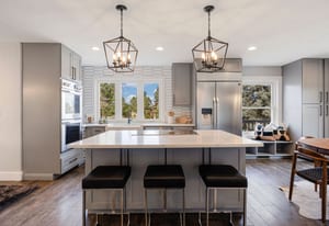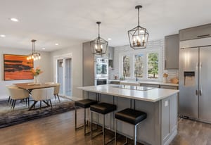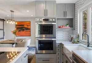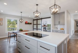 The beautifully updated kitchen is both stylish and functional, offering generous cabinetry, quartz countertops, stainless steel appliances, an oversized island ideal for gathering, and a charming eat-in nook. Just inside from the garage, a well-designed mudroom and laundry area (washer and dryer included) make daily routines seamless and organized.