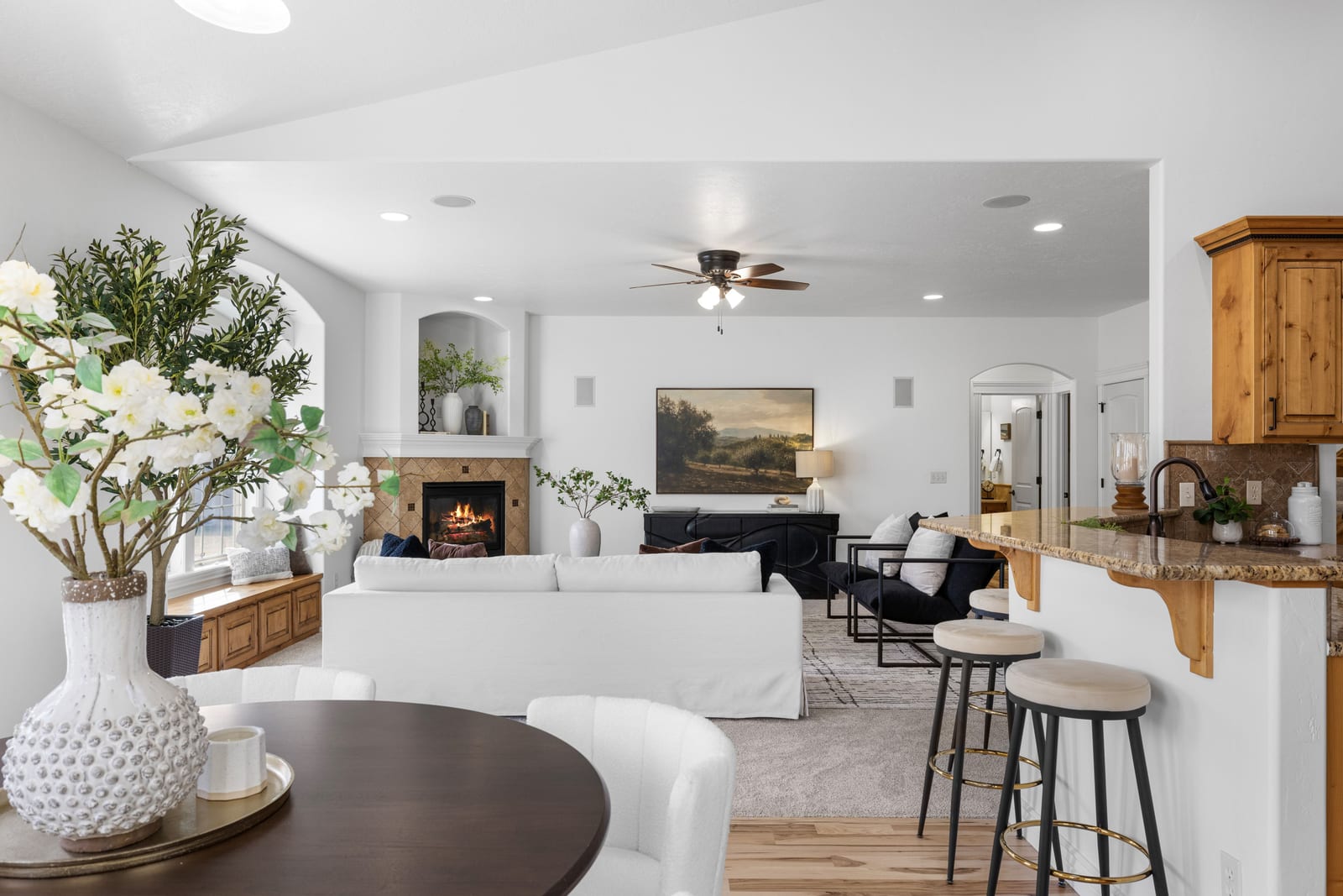 Nestled in the heart of Northwest Boise, this 4-bedroom, 3.5-bath original owner home is stunning. The open floorplan is perfect for relaxing or entertaining. With recent upgrades such as new carpet, refinished hardwood floors, & new interior/exterior paint, this home feels new yet boasts traditional character. The primary suite features include a gas fireplace, ensuite bathroom, tile shower, and spacious walk-in closet. With an office as well as a bonus room, there is space for all your recreational and living desires. Situated on nearly a quarter acre, the backyard retreat feels very private yet open to the neighborhood green space common area. Step outside and visit the neighborhood park ...