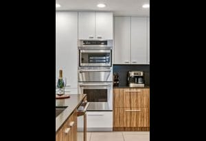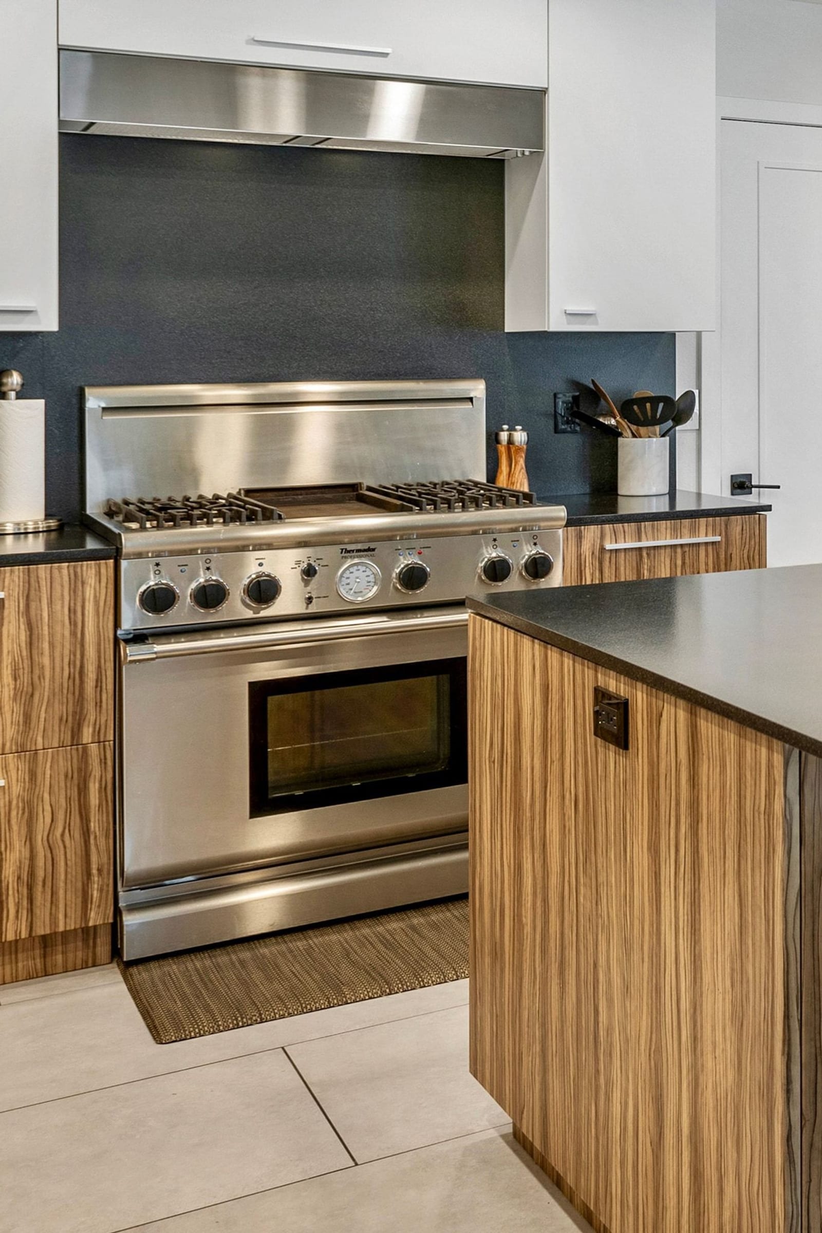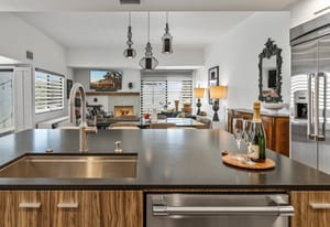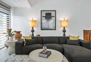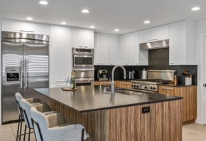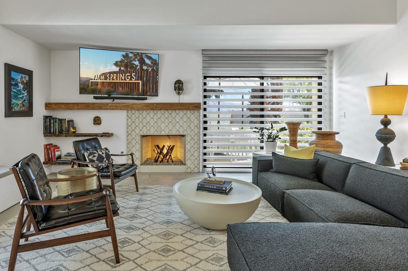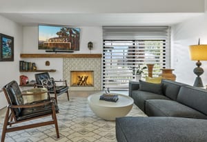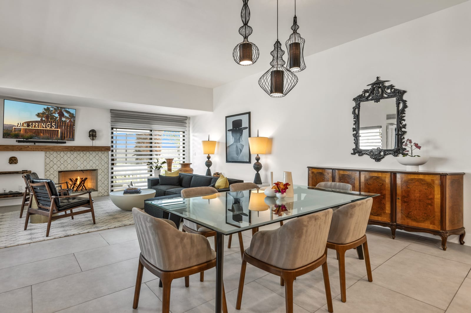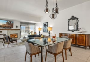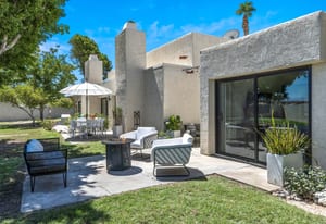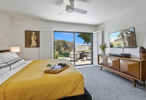Welcome to Tahquitz Creek Villas—an exceptional desert retreat in the heart of South Palm Springs. Set within a gated community framed by the dramatic San Jacinto Mountains, residents enjoy resort-style amenities including three sparkling pools, a spa, and tennis, pickleball, and shuffleboard courts. Completely renovated in 2021-22 with refined craftsmanship and premium materials, this sophisticated condo is truly move-in ready. The reimagined chef’s kitchen is the centerpiece of the home, featuring a spacious island ideal for everyday living and effortless entertaining. High-end THERMADOR appliances—including a Professional 36" gas range—pair beautifully with unique granite countertops finished in a leathered texture for a soft yet sophisticated feel. Exotic Olivewood cabinetry with soft-close drawers adds warmth and distinctive character.