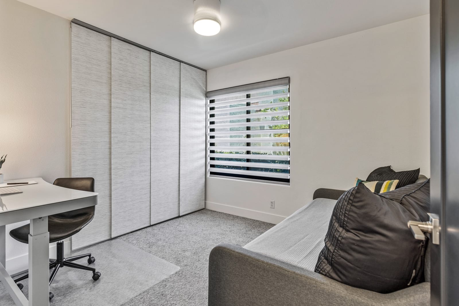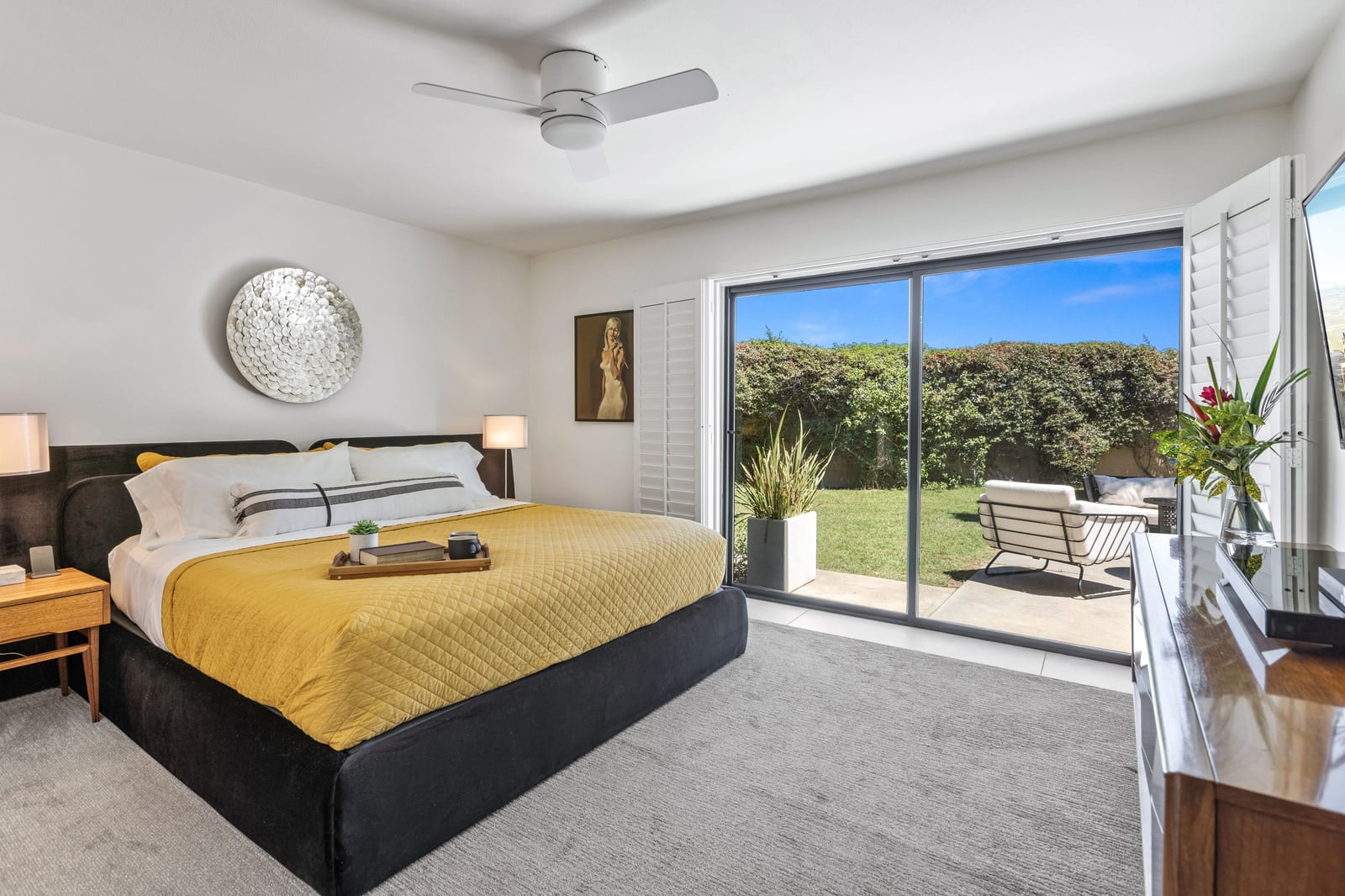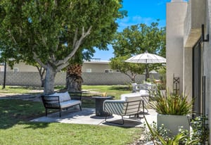 The primary suite opens directly to a private outdoor oasis with a nearby pool, spa, and BBQ—perfect for peaceful mornings or relaxed desert evenings. The spa-inspired bath features dual vanities, generous counter space, and a beautifully organized walk-in closet. Completing the home is an attached one-car garage and additional carport.