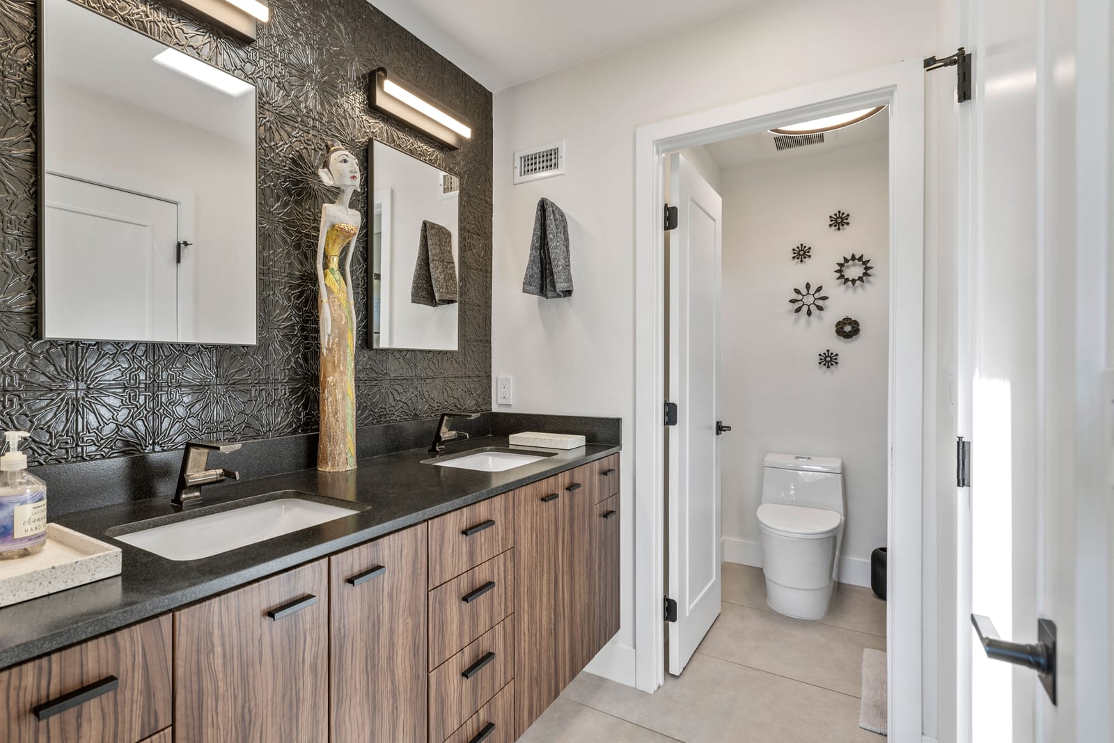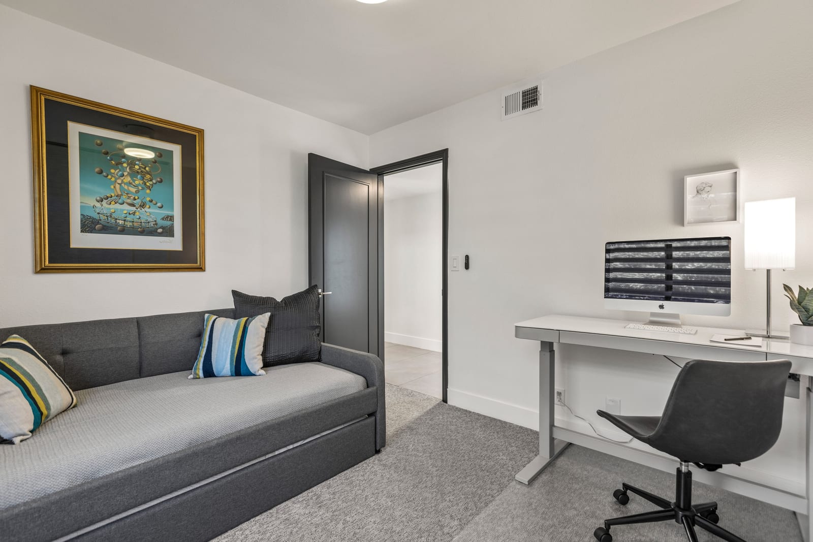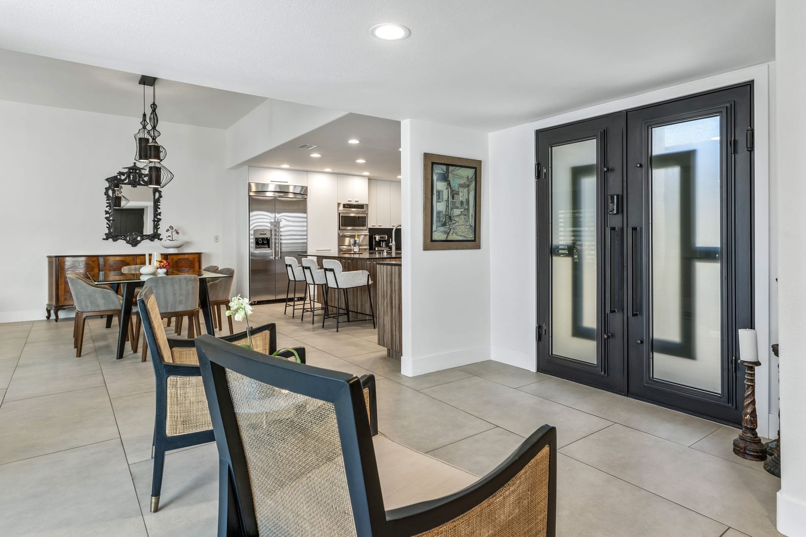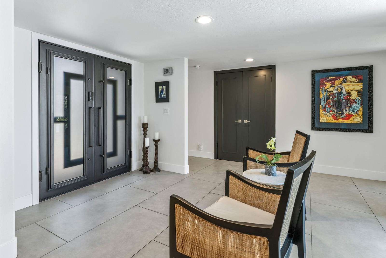 Thoughtful upgrades continue throughout, including new dual-pane windows, sliding patio doors, built-in Security Screens on double entry doors, Kerr Tile flooring, elegant Fina-tiled bathrooms, and fresh paint throughout.