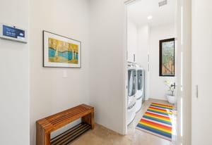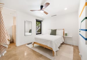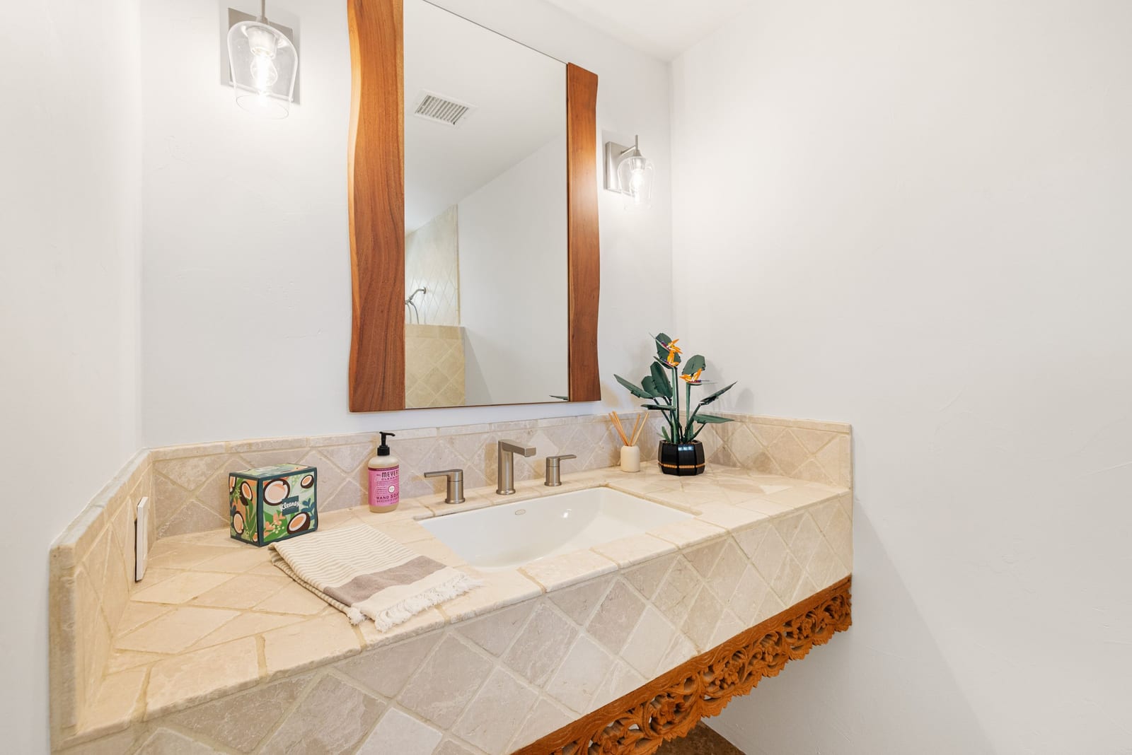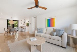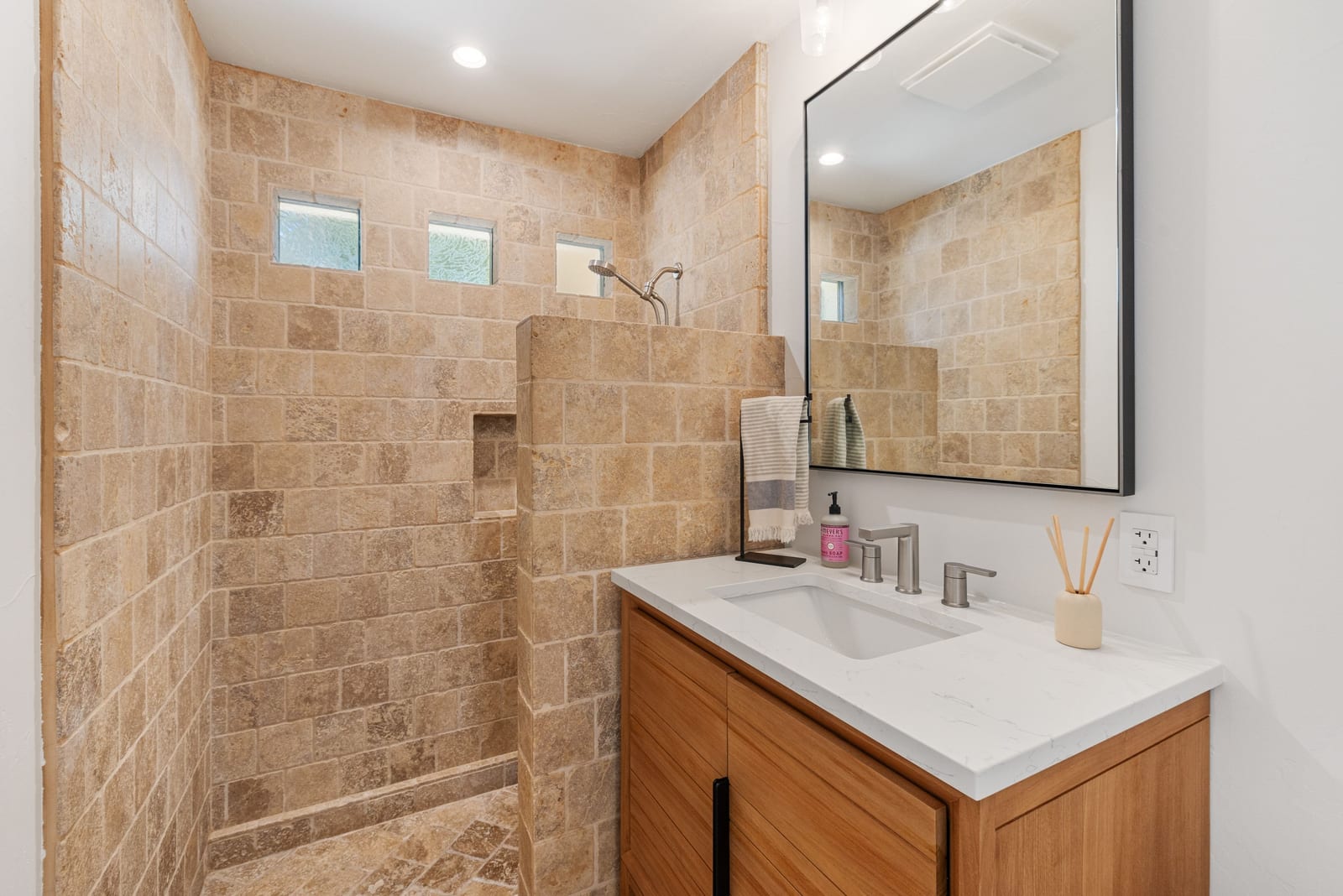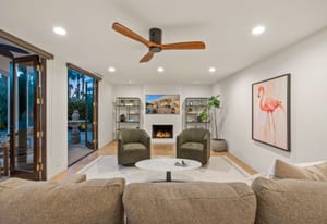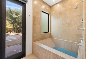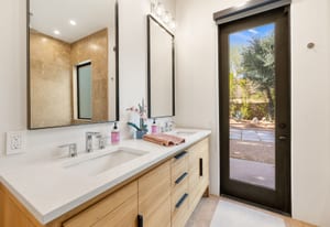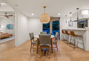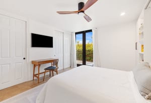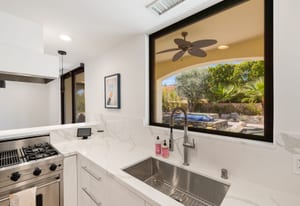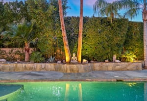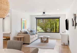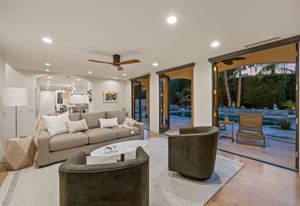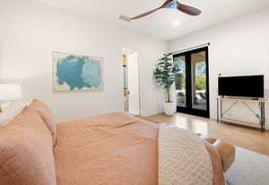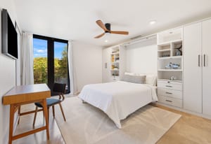 Three well-separated bedroom suites provide ultimate privacy for residents and guests alike. The spacious primary suite opens directly to the private patio, pool, and yard, offering a truly private resort-style retreat.