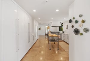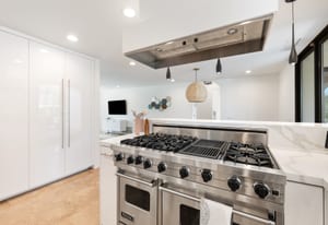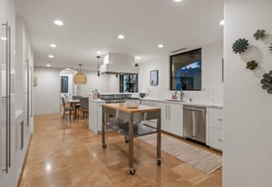 The crisp white chef's kitchen is the heart of the home, appointed with premium Viking appliances, custom cabinetry and overlooking the pool and beautifully landscaped backyard. The dining area and family/media room connect naturally, making the space ideal for entertaining or relaxed everyday living.