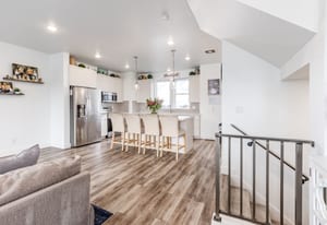Lender incentive available as low as 3.875%. Welcome home to low-maintenance living with unmatched views in every direction. This 3-bedroom, 2.5-bathroom home offers clean, modern finishes and a thoughtful layout that feels both functional and inviting. The kitchen features quartz countertops, sleek cabinetry, and stainless steel appliances, opening seamlessly to the main living space. Vinyl plank flooring and contemporary steel railings add a modern touch, with a convenient half bath just off the kitchen. Upstairs offers three bedrooms, including a primary suite with a walk-in closet and a private ¾ bath. The laundry is located upstairs, and the washer and dryer are included. Enjoy ...