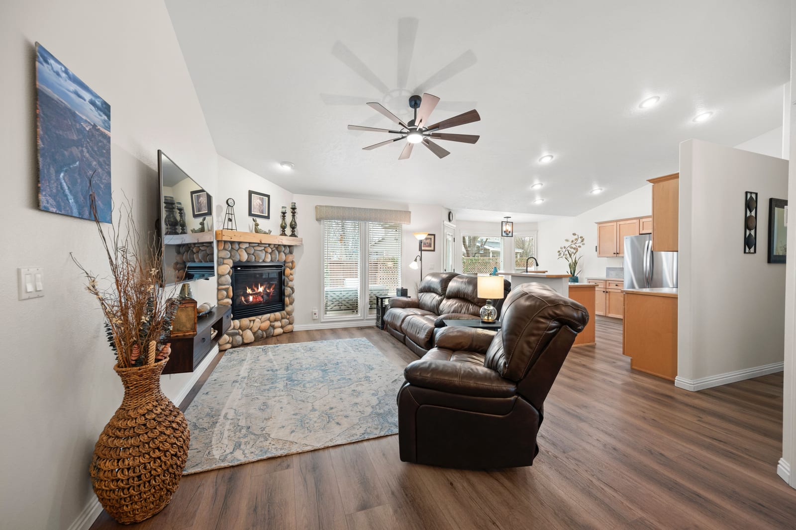 Welcome to this 4 bedroom 3 full bath home in desirable Lochsa Falls where comfort, style and functionality create the perfect home for everyday living and entertaining. The kitchen is decked out with all new ss appliances with room to dine at counter or eat-in kitchen table or enjoy the separate dining room. The great room with corner fireplace offers warmth and comfort. The split bedroom plan brings you to a private retreat with ensuite bath with dual sinks, a walk in shower and a spacious walk in closet. On the other side, additional bedrooms allow separation and privacy. The upper bonus room works as flexible space, an office, TV room or playroom, with an additional bedroom with balcony and a ...