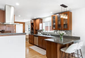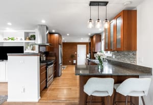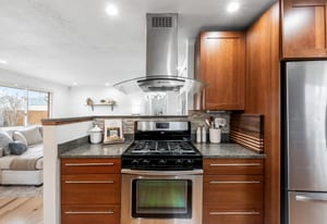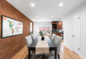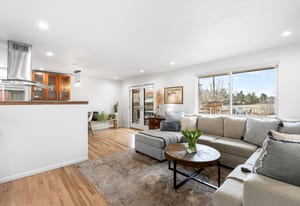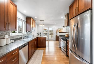 The main level is filled with natural light, highlighted by expansive windows, oak hardwood floors, & fresh interior paint that create a bright & uplifting atmosphere throughout the home. The spacious living room features custom built-ins and flows effortlessly into the dining area & updated kitchen with stainless steel appliances, breakfast bar, & tile backsplash. The layout is ideal for both everyday living & entertaining.