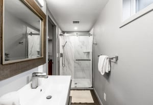 The main floor includes 3 bedrooms, highlighted by a spacious primary suite with a private en suite bath, a rare feature for ranch homes in this area. 2 guest bedrooms share a beautifully updated full bath, & all bedroom closets feature custom Elfa systems for exceptional functionality.