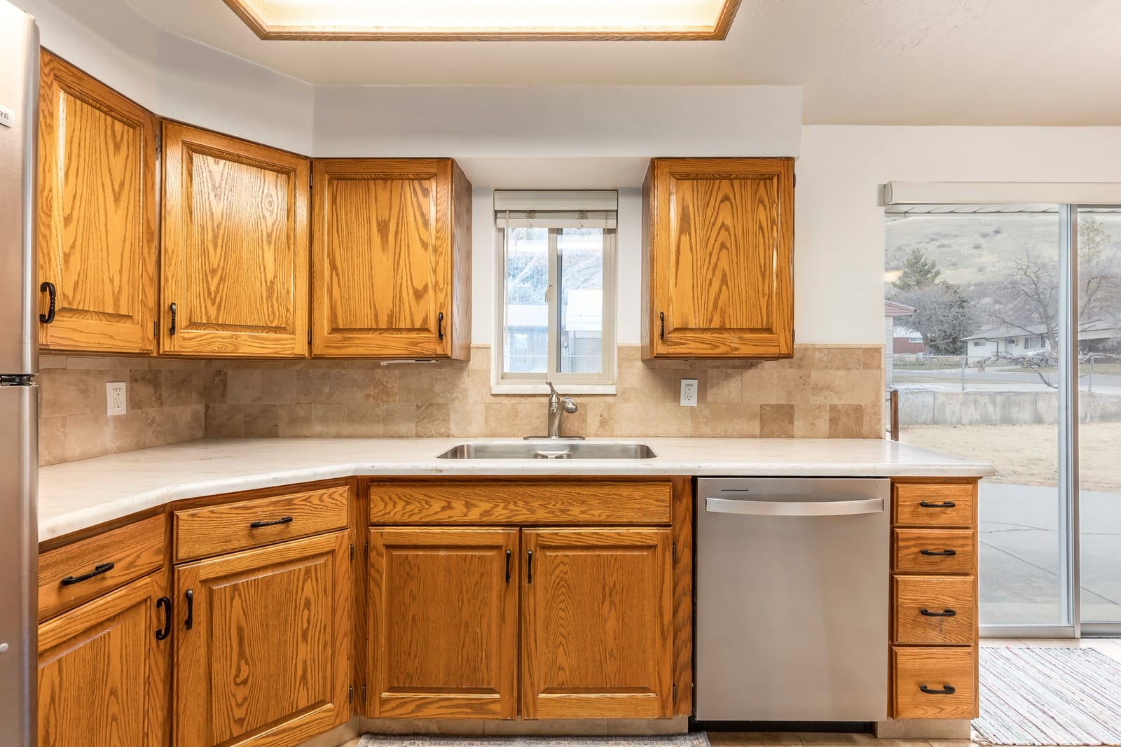 Charming all-brick rambler with mountain views and thoughtful updates. This 3-bedroom home features a spacious main living area with large windows and great natural light. The kitchen offers solid wood cabinetry, stainless steel appliances, tile flooring, and a sliding glass door leading to the backyard. Bedrooms are well sized with ample closet space, and the full bath has been updated with tile surround and double sinks. Recent improvements include a new roof, furnace, water heater, updated electrical, and dishwasher. The home also features newer carpet and a functional layout with flexible living spaces. Located in an established neighborhood in Springville with stunning mountain views and ...