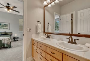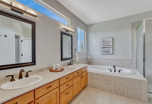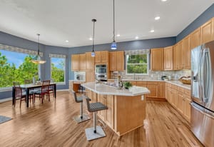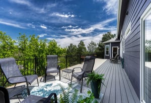 Nestled among the pines of Castle Pines, this 4-bedroom home blends charm and function. Soaring ceilings and a signed custom light fixture make a striking first impression. The main floor boasts a private primary suite with direct access to the expansive deck. In addition the main floor has formal dining room large enough for a 12 person table, cozy reading nook, and an open-concept family room/kitchen. Upstairs offers three spacious bedrooms—one ensuite, two with a Jack-and-Jill bath—plus a versatile loft.