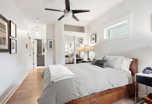 The main level offers an open-concept layout that seamlessly connects the living room, dining area, and kitchen—perfect for both daily living and entertaining. Natural light pours in throughout the space, enhancing its bright and welcoming feel. The generous primary suite features two closets and easily accommodates a king-size bed.