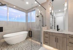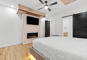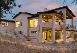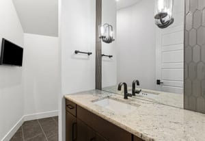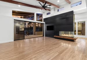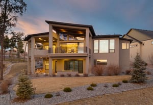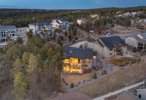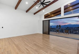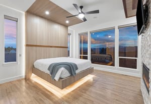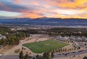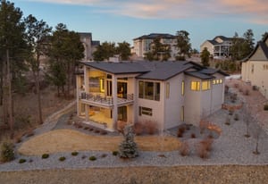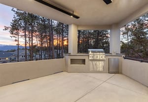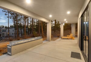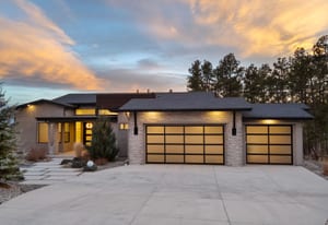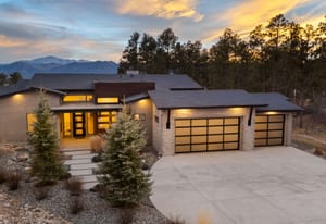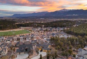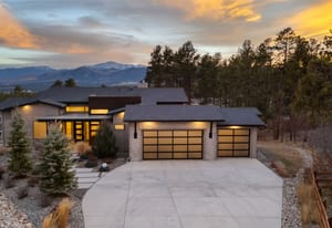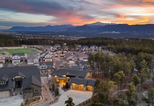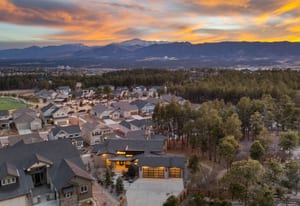 Perched on a premium lot in Sanctuary Pointe with views of Pikes Peak and the Front Range, this home is a custom ranch-style masterpiece that seamlessly blends elevated design, modern technology, and exceptional indoor-outdoor living. The heart of the home is the chef’s kitchen designed for entertaining and luxury. Custom cabinetry features dovetailed, soft-close drawers, roll-out trays and pull out pantry drawers. Leathered granite countertops are complemented by a custom wood bar accent at the island. High-end appliances include double ovens, a six-burner gas range, built-in refrigerator, and dishwasher. A framed hood with brick and walnut detailing, floating shelves, under-cabinet lighting, and a walk-in pantry with prep counter and wine fridge. The great room impresses with a dramatic three-sided glass fireplace with wraparound wood hearth. Beamed ceilings, expansive multi-panel sliding doors, allowing access to the heated, covered deck. The primary suite is a true retreat, with a custom floating king bed with integrated lighting, its own fireplace, auto shades, and a spacious walk-in closet with custom organization. The spa-inspired bath features a freestanding soaking tub, floor-mounted filler, leathered granite counters, digital thermostatic shower controls with rain head, designer lighting, and tile flooring. The walk-out basement continues the home’s design with 10-foot ceilings, epoxy flooring, fireplace, wet bar, enclosed wine room, theater room with included AV components, and a built-in vault. Two additional bedrooms share a Jack & Jill bath, and abundant storage. Outdoor living is exceptional, with a heated-covered deck with custom beams and iron railing, an outdoor kitchen with grill and beverage cooler, and a lower covered patio anchored by a Sonic fire table positioned to capture the breathtaking backdrop. Additional highlights include a main-level guest suite, EV charging station, Smart Home control panel, and a secured home delivery hub.
