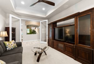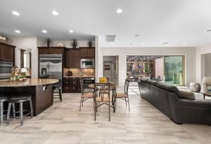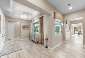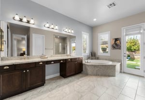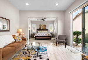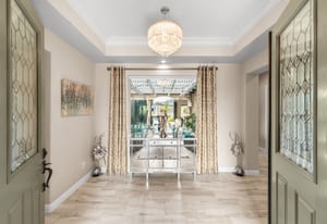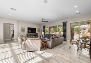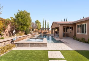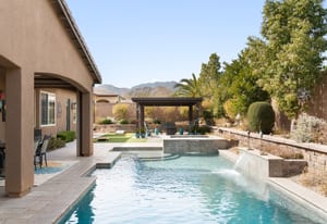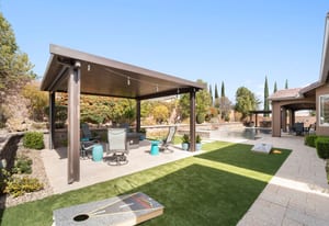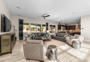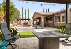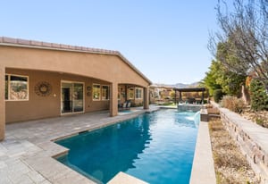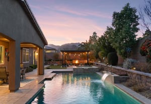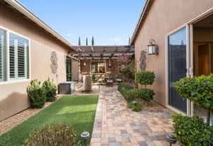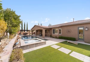 Located behind the gates of Serenity Ridge, this exceptional William Lyon single-story offers 3,657 SF of refined living on a private corner lot. Quality construction is evident throughout: all-copper wiring, insulated interior walls, solid-core doors, 10-ft ceilings, and 8-ft doors. A dramatic center courtyard with water feature connects seamlessly to the great room via 15-ft sliding glass doors. The gourmet kitchen features a Dacor gas cooktop, dual ovens, 48" refrigerator, wine cooler, and butler's pantry. The primary suite offers backyard/spa access. A private guest suite includes its own living room. Additional highlights: 5 HVAC zones, hardwired security, FLIR camera system, insulated 788 SF 3-car garage, and a 60-ft RV pad with full hookups. The resort backyard features an Anthony Sylvan Pebble Tech saltwater pool and spa, covered patios, BBQ island, and fire pit. Luxury construction, advanced systems, and exceptional indoor-outdoor living — a true Serenity Ridge masterpiece.