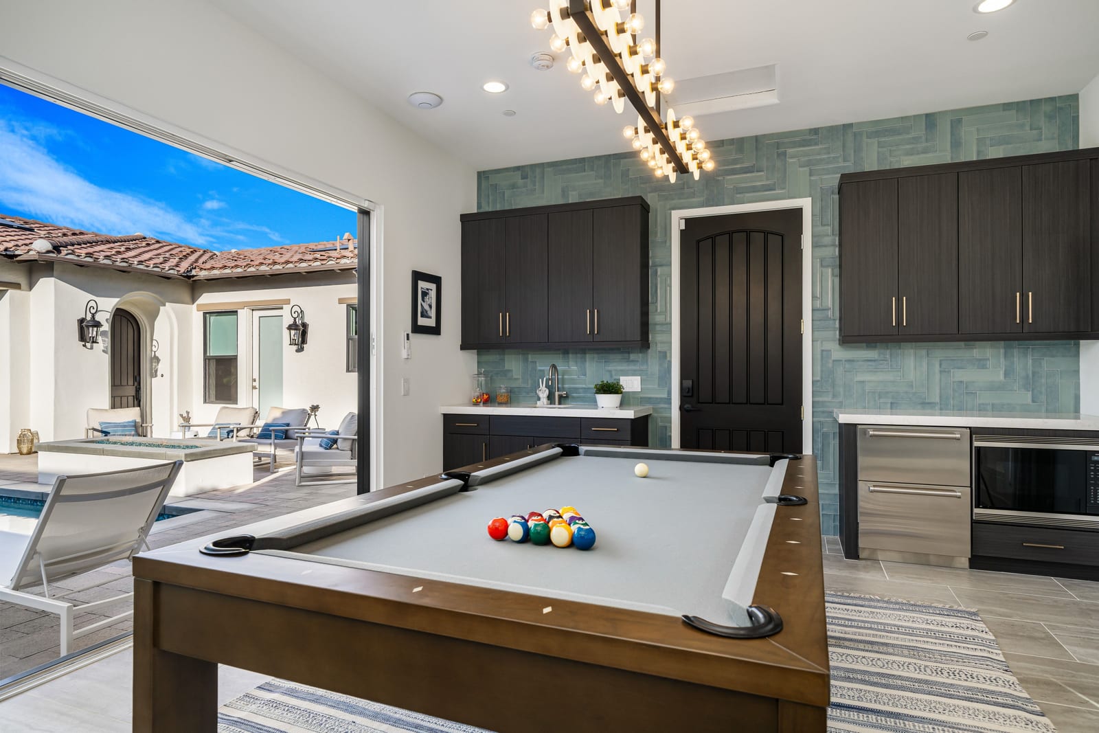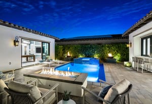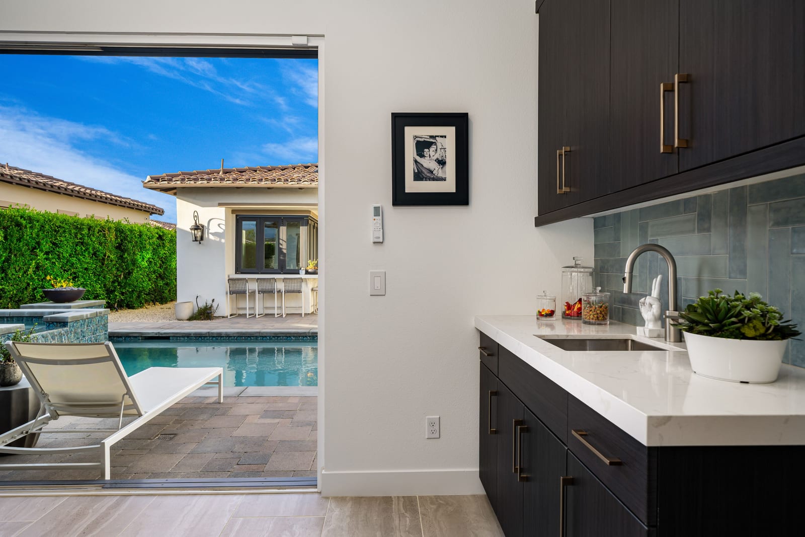 From the moment you enter , the home evokes romance of Europe. Designed so that the interiors gracefully embrace and surround the pool courtyard., creating an intimate, resort-like setting reminiscent of a private villa in the south of France or Tuscany. Walls of glass blur the lines between indoors and outdoor living , allowing natural light to cascade through the living spaces.