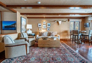 This generously scaled two-bedroom is designed for year-round comfort, balancing gathering spaces upstairs with quiet retreat below.