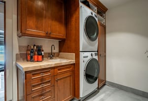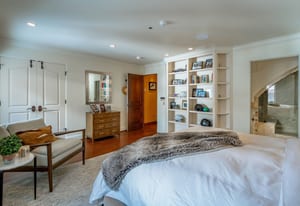 Downstairs, the primary suite offers its own fireplace and private patio overlooking the lake, along with a walk-in closet and oversized bath that enhance the sense of scale. The secondary bedroom features custom built-ins and generous proportions consistent with the home’s footprint. A generous half bath for guests on the main floor. Full laundry room with dedicated storage supports practical, long-term use.