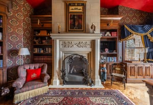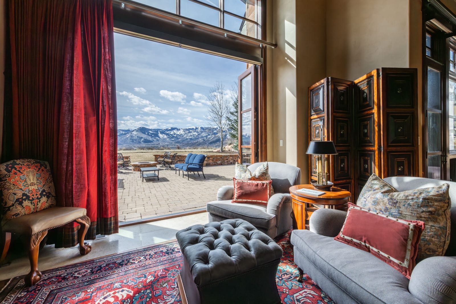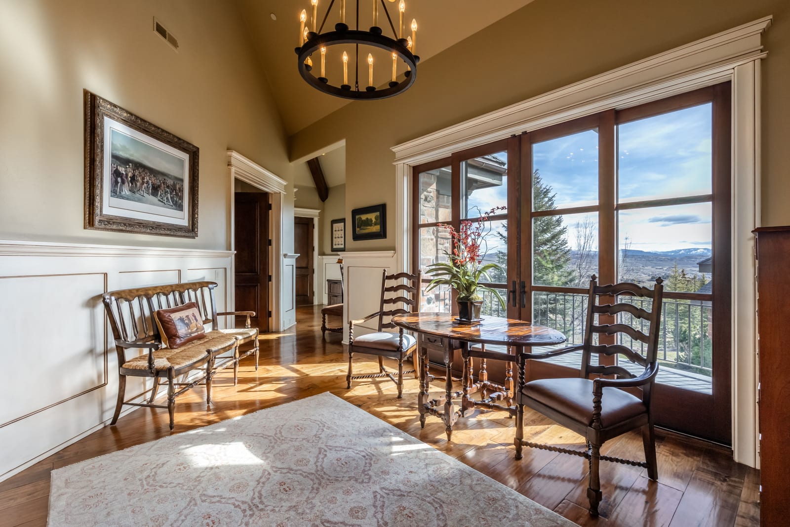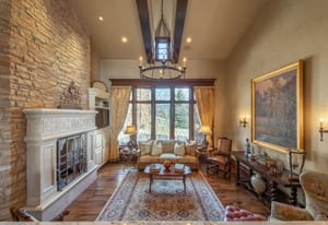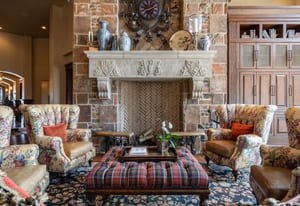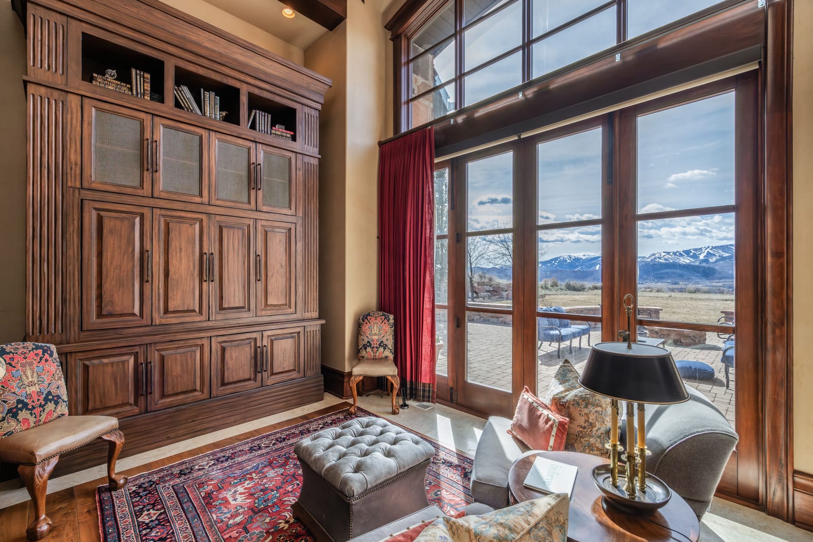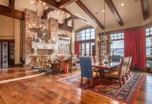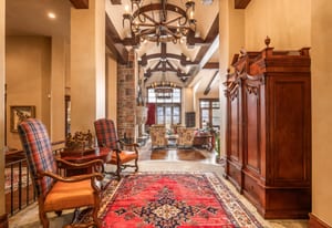Join us for launch event on Wednesday, March 25th from 12pm to 3pm. This beautifully constructed mountain estate sits just beyond the gates of Glenwild, perfectly positioned on 1.8 acres with sweeping views of Deer Valley Resort and the esteemed Glenwild Golf Course. Designed by Michael Upwall, this property was inspired by a refined Scottish hunting lodge and embodies a timeless Ralph Lauren aesthetic with rich textures, curated finishes, and impeccable craftsmanship. The grand entry is framed by hand-carved double doors with beveled glass that open to soaring ceilings, dramatic wood beams, statement lighting, and walls of windows perfectly capturing the mountain vistas. Designed for seamless main-level living and both intimate and grand entertaining, the great room centers around a dramatic fireplace with stone surround and herringbone brick, flowing effortlessly into the formal dining space and quiet reading nook. The chef’s kitchen serves as the true heart of the home offering abundant prep space, a French La Cornue range, Wolf appliances and generous island seating. Accented by a highly functional butler’s pantry ideal for catering or craft space with additional laundry facilities. A secondary living room with stunning leaded glass windows and its own fireplace provides flexibility for formal or informal living tucked away just beyond the kitchen. The executive office is perfectly appointed with oxblood ceilings, wood beams, custom built-ins, brass sconces, a stunning stone fireplace and a rich paisley wall covering creating a regal and dramatic workspace. Retreat to a primary suite that is both generous and serene, featuring custom wood paneling, a custom fireplace, spa-like bath with custom closets that provide ultimate organization and convenience with a hidden washer and dryer. Two additional main-level suites include a second primary option with a private deck, hammered copper soaking tub and stained-glass accents, while the third bedroom offers a charming window seat with built-ins and a thoughtful en suite bath. This property offers incredible cohesion with the surrounding grounds, with nearly every room opening to expansive paver decks designed for lounging, dining, and entertaining, complemented by mature landscaping and a flat lawn yard with panoramic mountain views. Outdoor features include multiple fireplaces, space for an outdoor kitchen, traditional bronze lanterns and copper gutters. Above the three-car garage sits a fully equipped guest residence with vaulted ceilings, full kitchen, dining area, private deck, gas fireplace, clawfoot tub, separate bedroom suite, and a hidden children’s bunk nook behind Dutch doors. A cedar sauna and adjacent three-quarter bath add additional luxury.