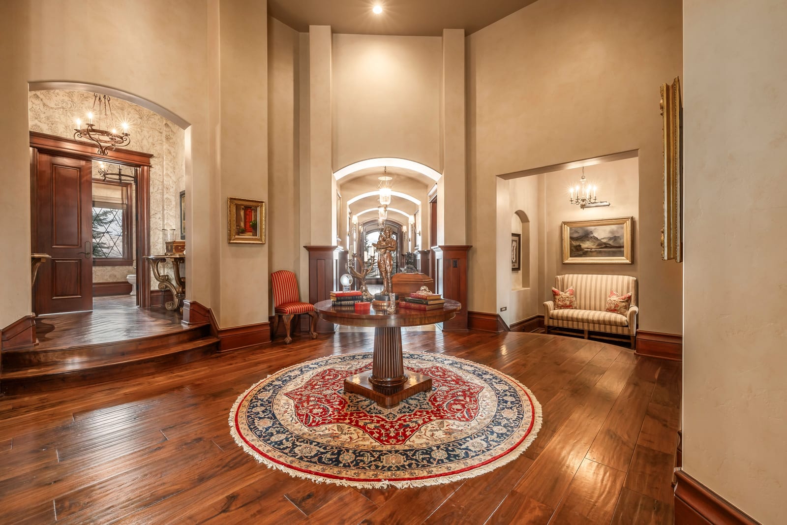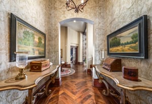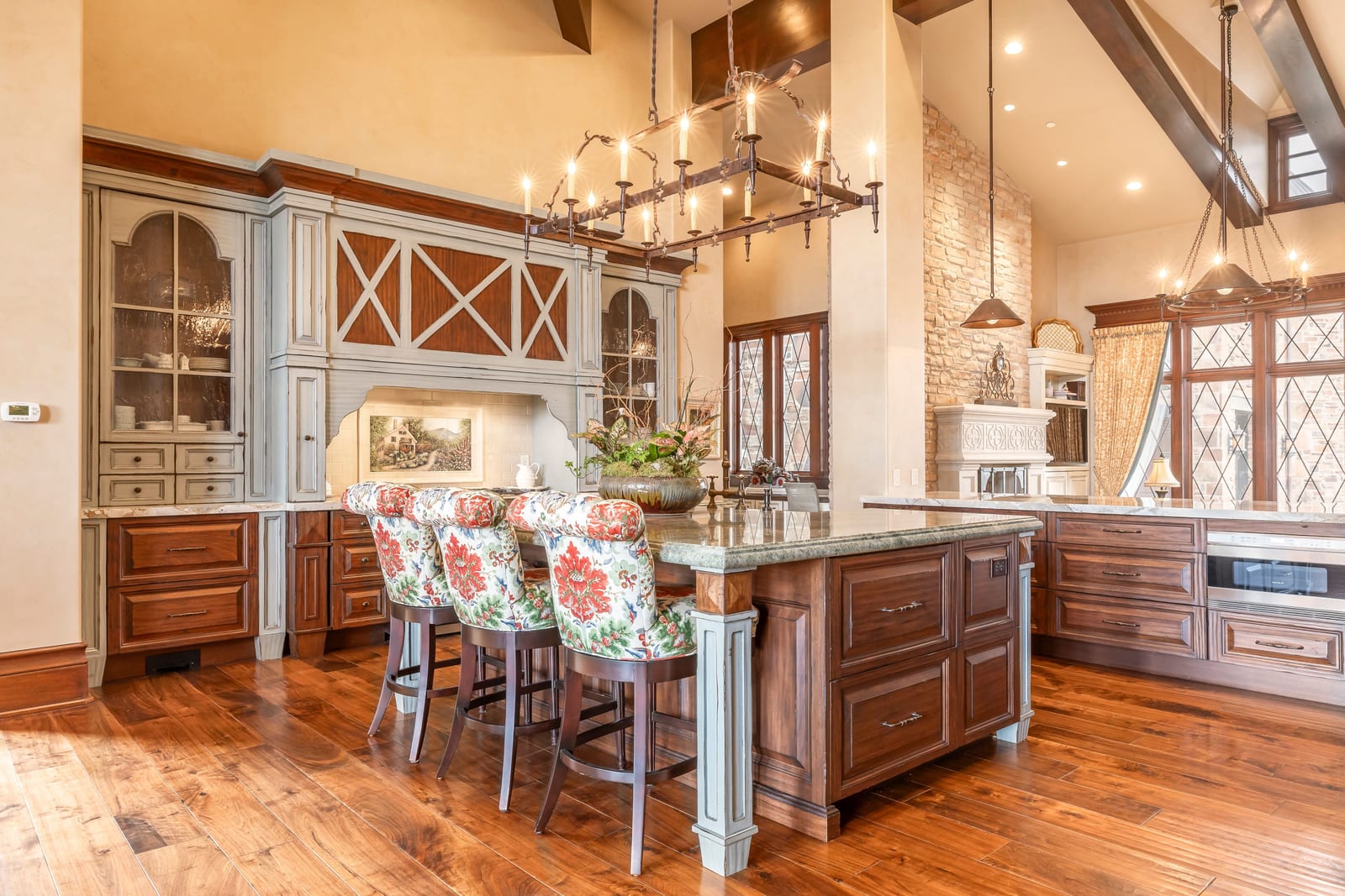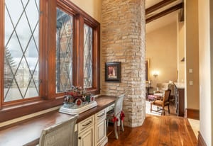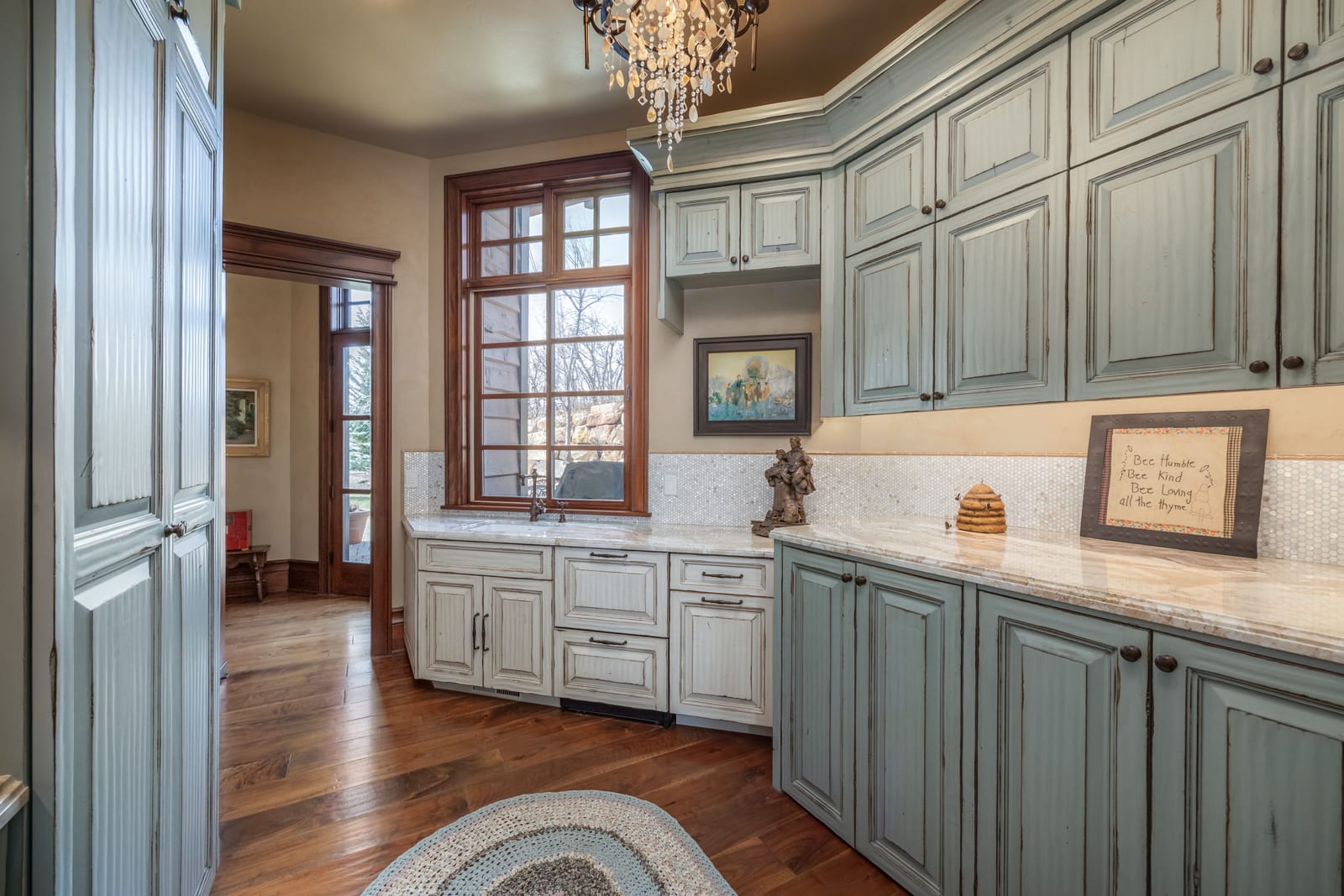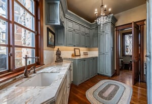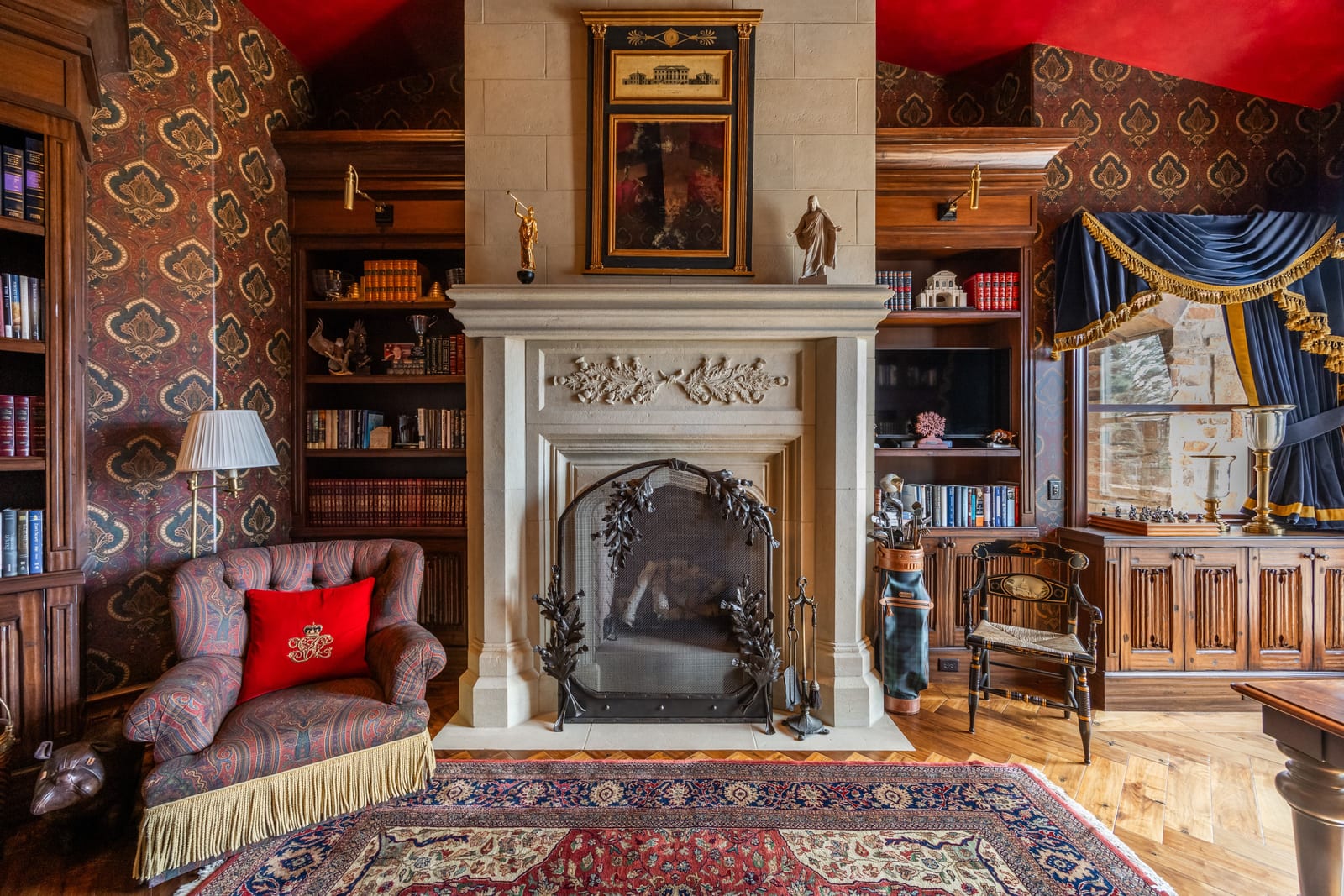 Join us for launch event on Wednesday, March 25th from 12pm to 3pm. This beautifully constructed mountain estate sits just beyond the gates of Glenwild, perfectly positioned on 1.8 acres with sweeping views of Deer Valley Resort and the esteemed Glenwild Golf Course. Designed by Michael Upwall, this property was inspired by a refined Scottish hunting lodge and embodies a timeless Ralph Lauren aesthetic with rich textures, curated finishes, and impeccable craftsmanship. The grand entry is framed by hand-carved double doors with beveled glass that open to soaring ceilings, dramatic wood beams, statement lighting, and walls of windows perfectly capturing the mountain vistas. Designed for seamless main-level living and both intimate and grand entertaining, the great room centers around a dramatic fireplace with stone surround and herringbone brick, flowing effortlessly into the formal dining space and quiet reading nook. The chef’s kitchen serves as the true heart of the home offering abundant prep space, a French La Cornue range, Wolf appliances and generous island seating. Accented by a highly functional butler’s pantry ideal for catering or craft space with additional laundry facilities. A secondary living room with stunning leaded glass windows and its own fireplace provides flexibility for formal or informal living tucked away just beyond the kitchen. The executive office is perfectly appointed with oxblood ceilings, wood beams, custom built-ins, brass sconces, a stunning stone fireplace and a rich paisley wall covering creating a regal and dramatic workspace. Retreat to a primary suite that is both generous and serene, featuring custom wood paneling, a custom fireplace, spa-like bath with custom closets that provide ultimate organization and convenience with a hidden washer and dryer. Two additional main-level suites include a second primary option with a private deck, hammered copper soaking tub and stained-glass accents, while the third bedroom offers a charming window seat with built-ins and a thoughtful en suite bath. This property offers incredible cohesion with the surrounding grounds, with nearly every room opening to expansive paver decks designed for lounging, dining, and entertaining, complemented by mature landscaping and a flat lawn yard with panoramic mountain views. Outdoor features include multiple fireplaces, space for an outdoor kitchen, traditional bronze lanterns and copper gutters. Above the three-car garage sits a fully equipped guest residence with vaulted ceilings, full kitchen, dining area, private deck, gas fireplace, clawfoot tub, separate bedroom suite, and a hidden children’s bunk nook behind Dutch doors. A cedar sauna and adjacent three-quarter bath add additional luxury.