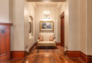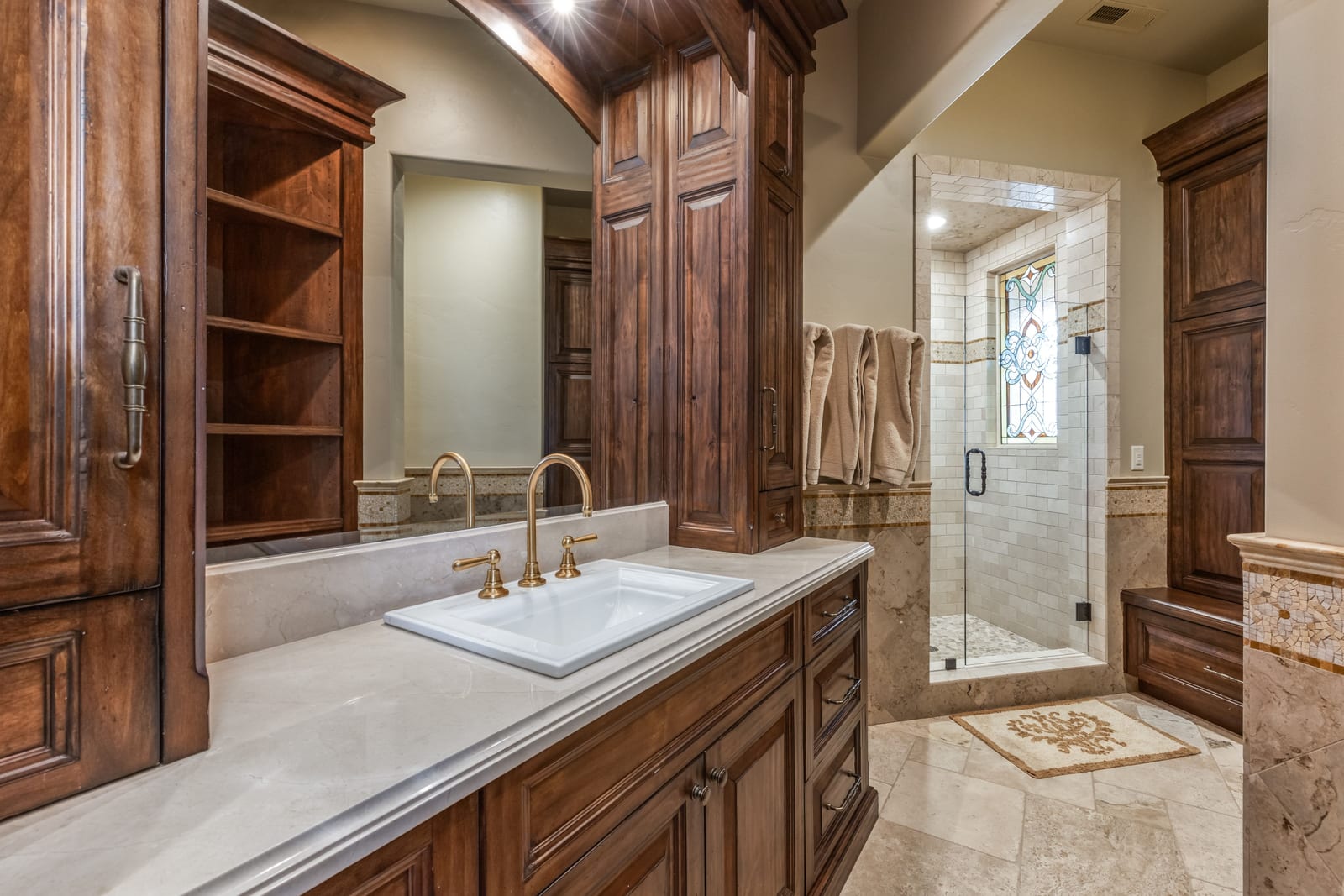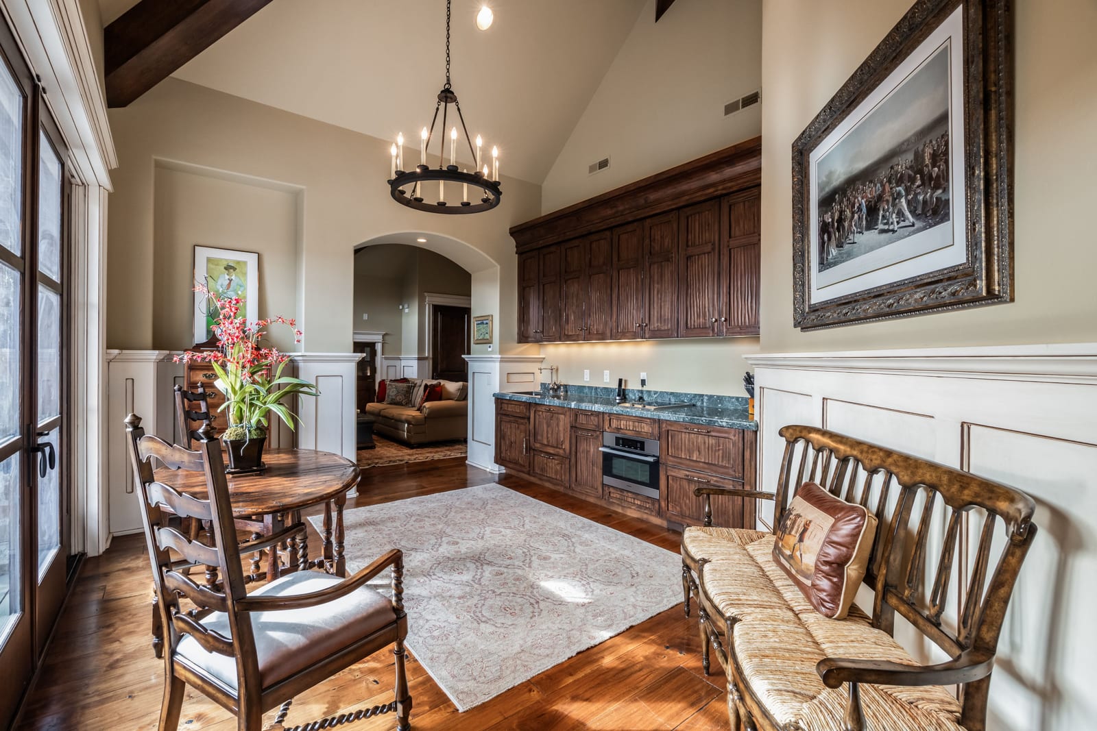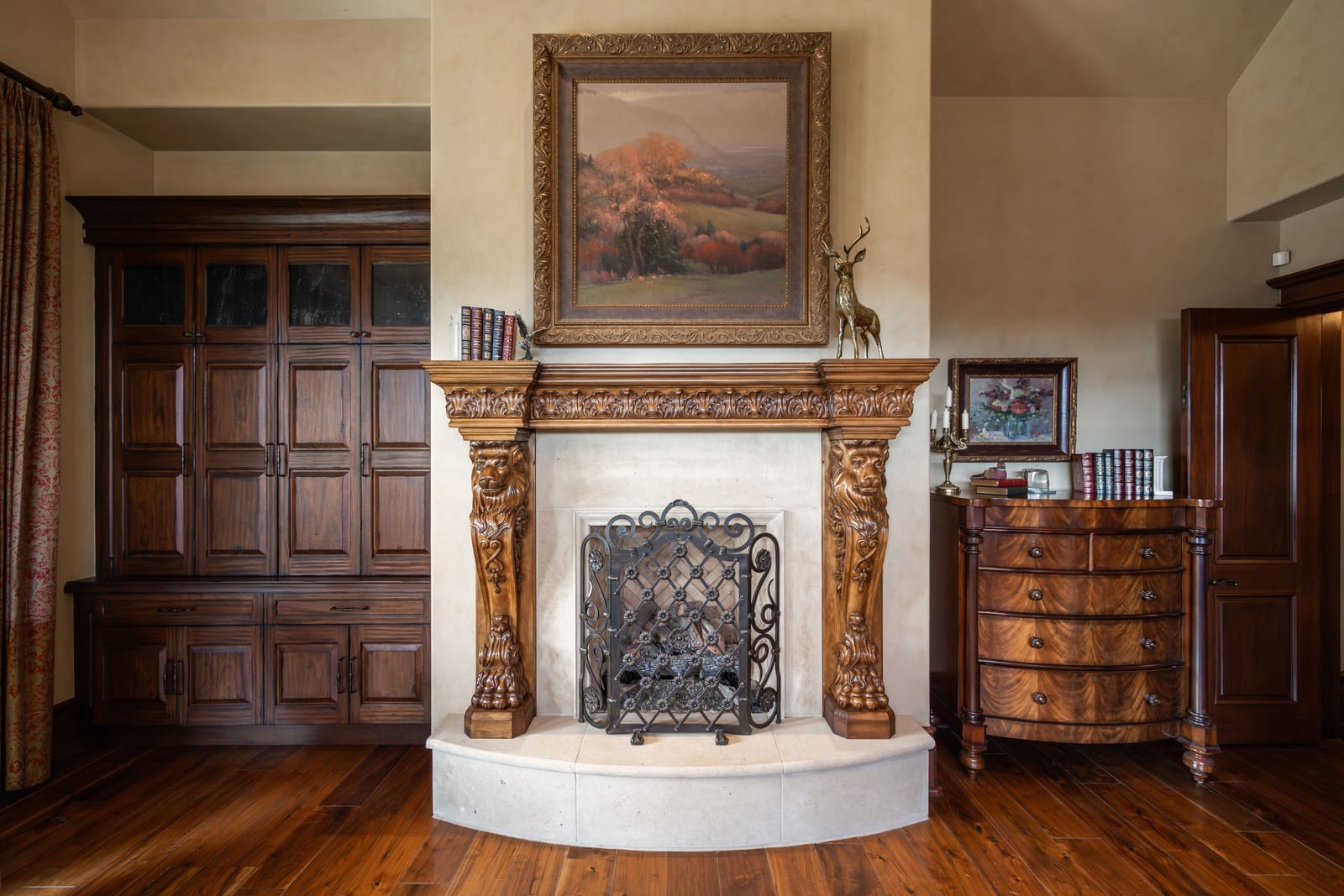 Join us for launch event on Wednesday, March 25th from 12pm to 3pm. This beautifully constructed mountain estate sits just beyond the gates of Glenwild, perfectly positioned on 1.8 acres with sweeping views of Deer Valley Resort and the esteemed Glenwild Golf Course. Designed by Michael Upwall, this property was inspired by a refined Scottish hunting lodge and embodies a timeless Ralph Lauren aesthetic with rich textures, curated finishes, and impeccable craftsmanship. The grand entry is framed by hand-carved double doors with beveled glass that open to soaring ceilings, dramatic wood beams, statement lighting, and walls of windows perfectly capturing the mountain vistas. Designed for seamless main-level living and both intimate and grand entertaining, the great room centers around a dramatic fireplace with stone surround and herringbone brick, flowing effortlessly into the formal dining space and quiet reading nook. The chef’s kitchen serves as the true heart of the home offering abundant prep space, a French La Cornue range, Wolf appliances and generous island seating. Accented by a highly functional butler’s pantry ideal for catering or craft space with additional laundry facilities. A secondary living room with stunning leaded glass windows and its own fireplace provides flexibility for formal or informal living tucked away just beyond the kitchen. The executive office is perfectly appointed with oxblood ceilings, wood beams, custom built-ins, brass sconces, a stunning stone fireplace and a rich paisley wall covering creating a regal and dramatic workspace. Retreat to a primary suite that is both generous and serene, featuring custom wood paneling, a custom fireplace, spa-like bath with custom closets that provide ultimate organization and convenience with a hidden washer and dryer. Two additional main-level suites include a second primary option with a private deck, hammered copper soaking tub and stained-glass accents, while the third bedroom offers a charming window seat with built-ins and a thoughtful en suite bath. This property offers incredible cohesion with the surrounding grounds, with nearly every room opening to expansive paver decks designed for lounging, dining, and entertaining, complemented by mature landscaping and a flat lawn yard with panoramic mountain views. Outdoor features include multiple fireplaces, space for an outdoor kitchen, traditional bronze lanterns and copper gutters. Above the three-car garage sits a fully equipped guest residence with vaulted ceilings, full kitchen, dining area, private deck, gas fireplace, clawfoot tub, separate bedroom suite, and a hidden children’s bunk nook behind Dutch doors. A cedar sauna and adjacent three-quarter bath add additional luxury.