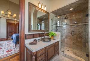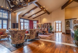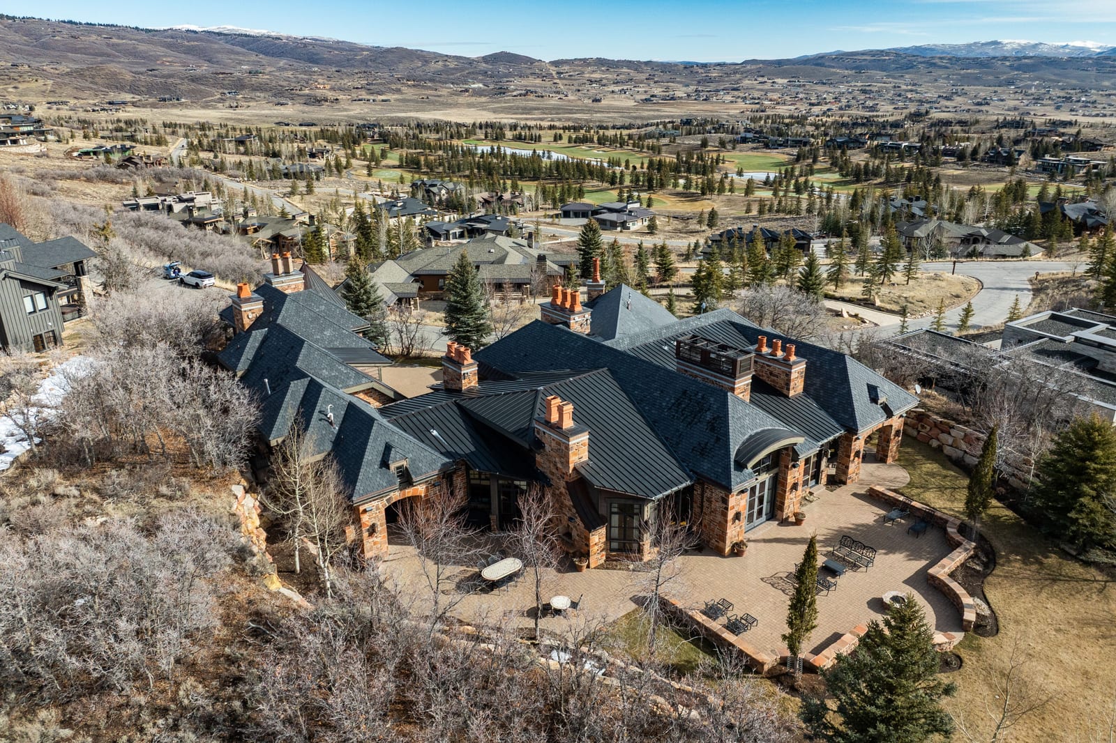 Additional highlights include a heated driveway, large garage with storage and epoxy floors, garage floors. central vacuum, slate-inspired metal and tile roof and thoughtful positioning set back from the road for privacy while maintaining easy gate access. Enjoy the ultimate in privacy and convenience with the guard-gated Glenwild Golf Club lifestyle providing world-class golf, spa, dining, and fitness amenities, all less than 30 minutes from downtown Salt Lake City and the international airport.