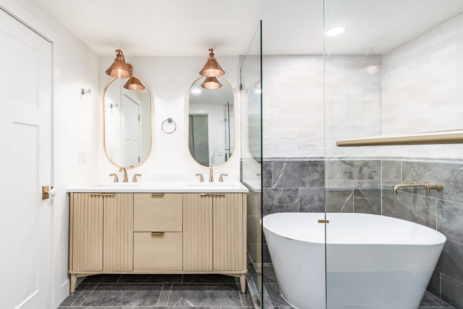 Fully renovated Liberty Wells rambler blending historic charm with modern systems and construction. This permitted, top-to-bottom remodel included foundation work, structural updates, new sewer line, plumbing, electrical, windows, HVAC, kitchen, baths, flooring, and more-offering the feel of a newer home with classic character. The kitchen features custom soft-close cabinetry, granite countertops, gas range, and built-in microwave drawer. The primary suite includes a freestanding tub, separate shower, and private water closet. Designer-quality finishes carry throughout. Separate climate control for each level, a tankless water heater, newer roof, and fully finished basement provide ...