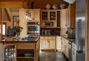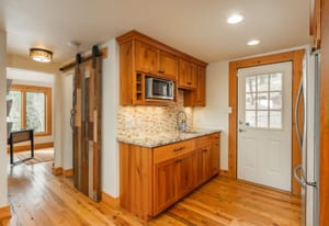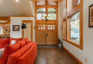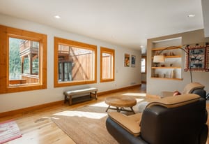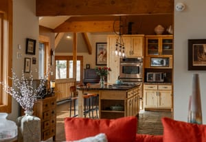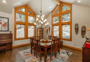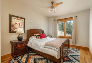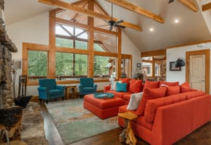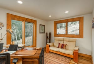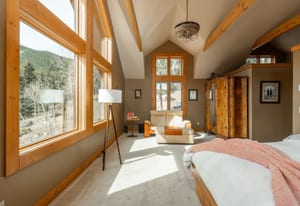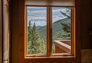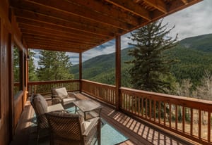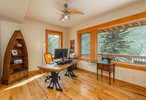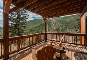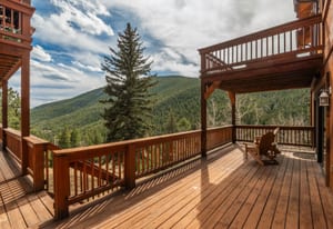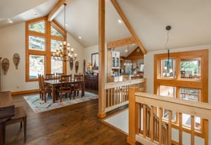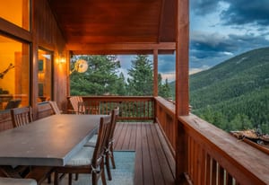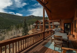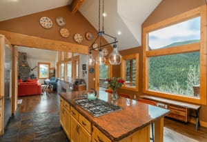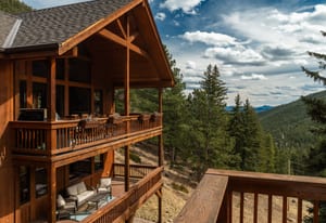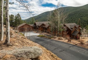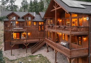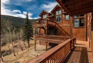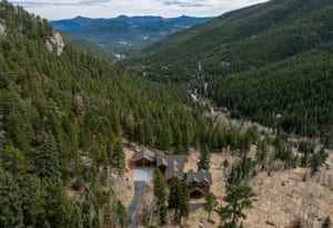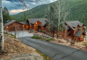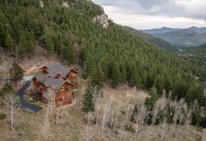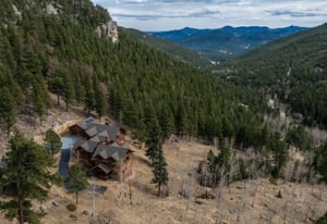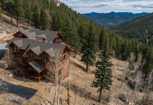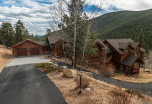 Here is the home you have been waiting for! Main level living in 2005 built timber frame on gentle 3.75 acre lot surrounded by mature aspen and oriented toward massive mountain views. Located far enough away so you can hear a pin drop, but still within an hour/5 mins to D.I.A. and 20 mins to groceries and restaurants, this home offers vaulted open rooms with walls of glass framing pristine treed mountains, a hillside of rock outcrops and distant layered vistas. Visiting elk, deer, fox and other forest friends are to be enjoyed from the dramatic two tiered wrap around wood decks. Double door slate entry opens to an immense living room with moss rock wood-burning fireplace, exposed beams and framed walls of glass. Gorgeous wide plank hardwood floors plus alder doors and trim grace the living areas, complimenting the timber frame design and custom lighting. Kitchen has slab granite counters and provides inspiring views along with a center island with bar seating; high-end appliances including stainless side-by-side refrigerator, 5 burner gas cooktop and double GE Profile convection wall ovens; glass front wood cabinets, pantry closet, an organization center and atrium door to view deck. Large vaulted formal dining room holds space for China closets and buffets for serious entertaining. Primary suite is enveloped by views featuring a towering wall of glass, private deck, walk-in customized closet, 5 piece slab granite/travertine bath with jetted tub and frameless walk-in shower. Walk-out level has a stunning separate suite with oak hardwood flooring that includes a kitchenette, custom barn doors, marble walled 3/4 bath plus an office and a family room with stone surround wood burning fireplace that opens to the bedroom and offers double sliding doors to the wraparound decks. Sunny den leads the way to a tiled 1/2 bath and two more bedrooms that share a full bath. Underneath the home is a 320 s.f. storage room accessed from the back stairs. Partially heated driveway.