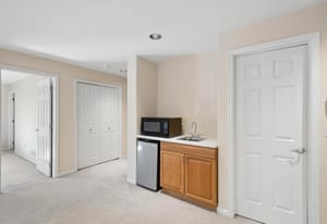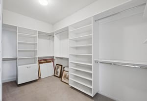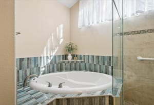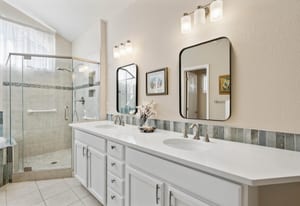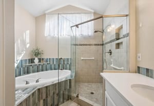 shower, quartz countertops, designer tile accents, as well as a spacious walk-in closet