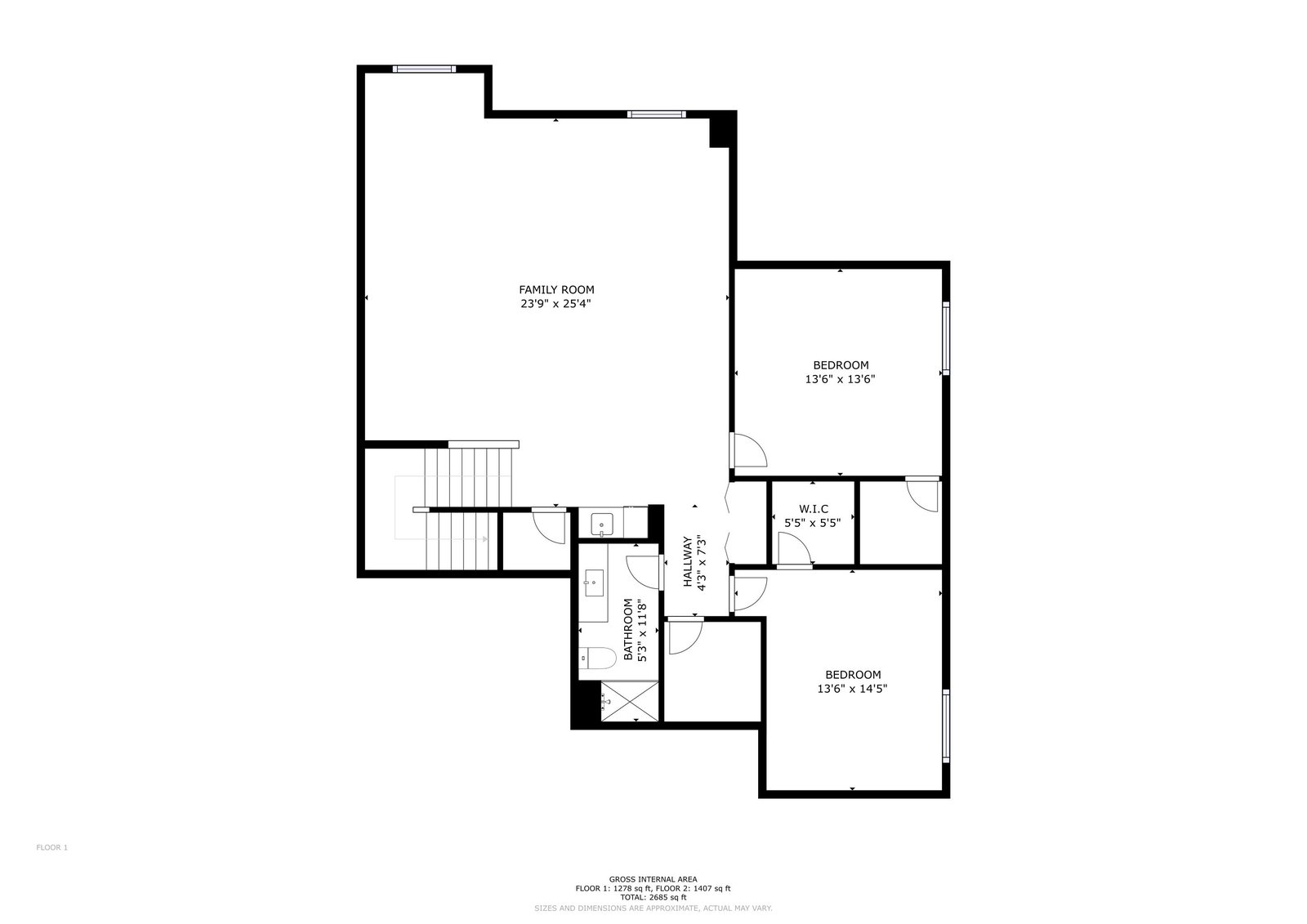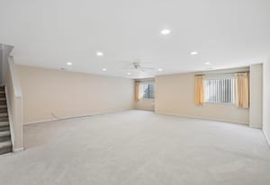 bathroom with walk-in shower, and generous flex space ideal for a media room,
