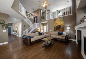 Beautifully remodeled with intention and style, this home in The Meadows blends rustic farmhouse character with modern comfort in one of Castle Rock’s most sought-after neighborhoods. The layout offers space for everyday living and gathering, with four bedrooms on the same level, a dedicated main-level office, a versatile upper loft, and a three-car garage. At the center of the main level, the remodeled kitchen serves as the heart of the home, unfolding just beyond the entry foyer, cozy sitting room, and formal dining area. A large butcher block island anchors the space, extending into breakfast bar seating that connects to the sliding door and deck beyond. Quartz countertops surround the island, complemented by a porcelain farmhouse sink and matching antique farmhouse-style pendant lights. Hardwood floors run throughout the main level and into the dramatic two-story great room, where a gas fireplace and shiplap accent wall add warmth and character beneath soaring 17-foot ceilings. Just off the great room, a dedicated main-level office sits behind French doors, featuring a statement tile accent wall and plenty of space to work from home or manage the day. Upstairs, the primary suite offers vaulted ceilings and views toward the foothills. The ensuite bath provides a quiet place to unwind with a soaking tub, tiled walk-in shower, dual vanities, and a walk-in closet. Three additional bedrooms, each with ceiling fans, share a dual-sink full bath on the same level. Outside, the backyard feels private and serene among mature pine trees. A two-tier extended stamped concrete patio creates space for both outdoor living and dining, surrounded by landscaping. Located in the coveted Meadows community, the home offers easy access to trails, parks, top-rated schools, shopping, and neighborhood pools. This Castle Rock home is ready for its next chapter. Come see it for yourself.