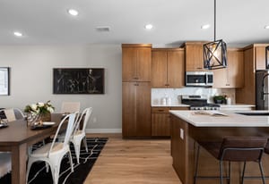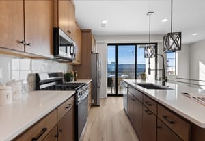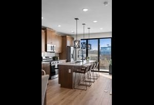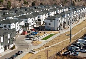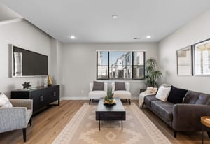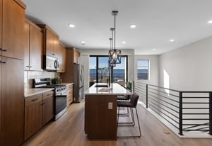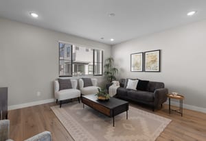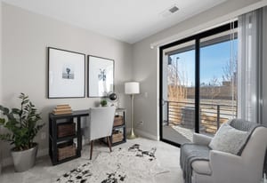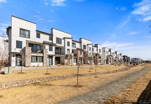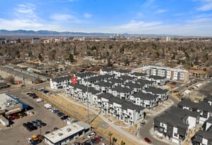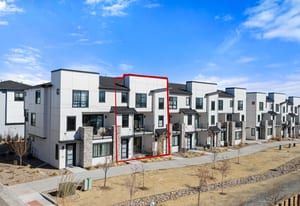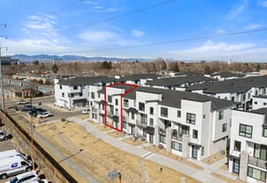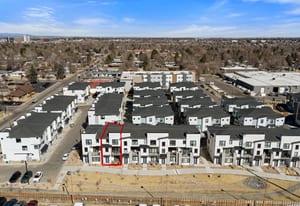 RARE COURTYARD LOCATION OVERLOOKING GREEN SPACE WITH MOUNTAIN VIEWS — A UNIQUE AND HIGHLY DESIRABLE RESIDENCE! This nearly new 2022 Henry floor plan is quietly positioned on a private courtyard and represents a setting seldom available within the community — one of the better positioned homes with rare courtyard orientation, open green space views, and mountain views. The well-designed three-level layout provides exceptional privacy with a dedicated bath for each bedroom, creating a highly functional design ideal for guests, roommates, or work-from-home flexibility. The ground level features a private bedroom with adjacent full bath, perfect for guests, a home office, or flexible living. The main living level showcases open-concept living centered around a spacious gourmet quartz island kitchen upgraded with La Plata Peak quartz countertops, stainless steel gas range, enhanced cabinetry, and designer backsplash. The kitchen flows seamlessly into the dining and living areas and opens to a private balcony with mountain views, creating an ideal setting for both everyday living and entertaining. Upstairs, the primary suite features an oversized walk-in closet, dual vanities, large shower, and generous counter space, while a secondary bedroom with en-suite bath and conveniently located upper-level laundry complete the top floor. Additional upgrades include Kohler plumbing fixtures, modern iron stair rails, extended flooring in the great room, enhanced lighting package, front-load washer and dryer, and central air conditioning. Additional highlights include south-facing exposure, covered front porch, smart garage technology, and an attached two-car garage with storage. Ideally located near I-25, Evans Avenue, and light rail with direct access to the Cherry Creek Trail, and just minutes to Washington Park, Platt Park, the University of Denver, Cherry Creek, and the Denver Tech Center. Completely move-in ready! WWW.2074SHOLLY.COM