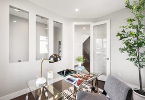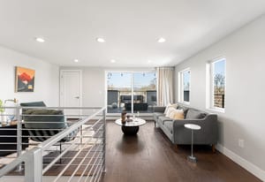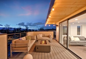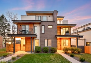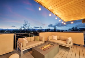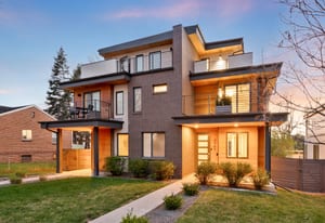 A thoughtfully executed modern duplex that lives above its category, defined by scale, condition, finish, and location, rarely found in comparable offerings. Subtle topography elevates the home, enhancing natural light and sweeping mountain views. The main level is refined yet highly livable. Wide-plank hardwoods run throughout & glass doors open to a bright yet private office. The kitchen is anchored by an oversized waterfall island, quartz surfaces, KitchenAid appliances (induction + gas), and a walk-in pantry. A formal dining area with statement lighting and custom shelving flows seamlessly into the living room, where a floor-to-ceiling quartz fireplace and large sliding doors connect to the outdoors. The backyard deck features a motorized awning for effortless sun and shade control. Upstairs, a rare layout offers two oversized primary suites, each with en-suite baths, dual vanities, and walk-in closets. One includes a private balcony and five-piece bath with a soaking tub, walk-in shower, and water closet; the other mirrors the same level of finish with mountain views. The top level is designed for entertaining, with a wet bar, refrigerator, & ¾ bath. Sliding doors open to an expansive rooftop retreat, a deck (400+ sqft) with panoramic mountain views, and a fire pit. The bright lower level features 9’ ceilings, large windows, a spacious secondary living area, a private guest suite, a full bath, and ample storage. Freshly stained cedar siding and low-maintenance Trex decking offer the benefits of newer construction without compromise. Ideally located at the convergence of Harvard Gulch, Platt Park, and S Broadway, moments to local restaurants, shops, parks, music venues, and light rail access.