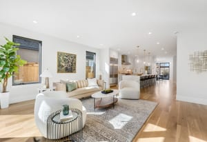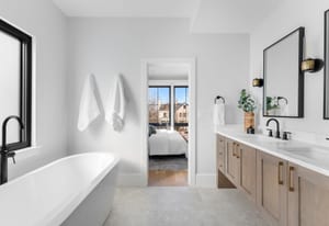 A bold new standard of modern luxury debuts in the heart of Cherry Creek North. Crafted by Second Story Development, this newly completed residence offers nearly 3,800 finished square feet of refined living across four thoughtfully designed levels. The main level unfolds around a stunning chef’s kitchen appointed with a 48-inch Wolf commercial range, a 42-inch Sub-Zero refrigerator, dual Bosch dishwashers, a wine cooler, Quartz countertops, and an expansive island designed for gathering. Custom cabinetry, a walk-in pantry, and wide plank white oak floors add warmth and sophistication. Floor-to-ceiling windows frame the dining room, highlighted by a built-in hutch with accent lighting, while the living room is anchored by a dramatic gas ribbon fireplace with a walnut mantle. Sliding doors open to a private patio complete with a pergola, built-in grill, and fire pit, creating effortless indoor-outdoor living. Upstairs, two exceptional primary suites provide both flexibility and privacy. The second-floor primary suite features a trayed ceiling with ambient lighting, a sitting nook with a fireplace, and a spa-inspired five-piece bath with soaking tub, oversized shower, dual vanities, and a custom walk-in closet. A secondary suite offers its own four-piece bath and walk-in closet, while a well-appointed laundry room with utility sink and storage completes the level. The third floor presents a private bedroom, 3/4 bath, and a bonus lounge with a wet-bar area that opens to a rooftop deck engineered for a future hot tub, showcasing mountain views and remarkable Colorado sunsets. The finished lower level includes a spacious recreation room with ten-foot ceilings, a guest bedroom, three quarter bath, and storage with potential for a wine cellar. An elevator services all four levels. An oversized attached two-car garage, fenced yard, and an unbeatable location just steps from Cherry Creek’s acclaimed dining, galleries, and boutiques.
