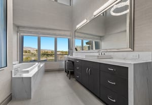 Architecturally striking & truly one-of-a-kind, this award-winning contemporary custom estate, in guard-gated Tournament Hills, redefines luxury living in Summerlin. Dramatic lines, soaring ceilings & walls of expansive windows flood the ~8,600 sqft interior with natural light, blending bold design with seamless indoor-outdoor flow & breathtaking golf course & mountain views. The heart of the home is a chef’s kitchen with generous island, bespoke cabinetry & effortless connection to expansive living & dining areas—perfect for entertaining. The primary retreat is a private sanctuary feat. natural light, dual spa-like baths, oversized walk-in closets & a versatile flex space ideal for a home gym or meditation room. 4 guest suites offer privacy & comfort, complemented by a home office & bath, bar & wine room. Set on a .66-acre homesite, the resort-style outdoor space offers lush landscaping, privacy & the essence of the legendary Las Vegas lifestyle—schedule your private showing today.
