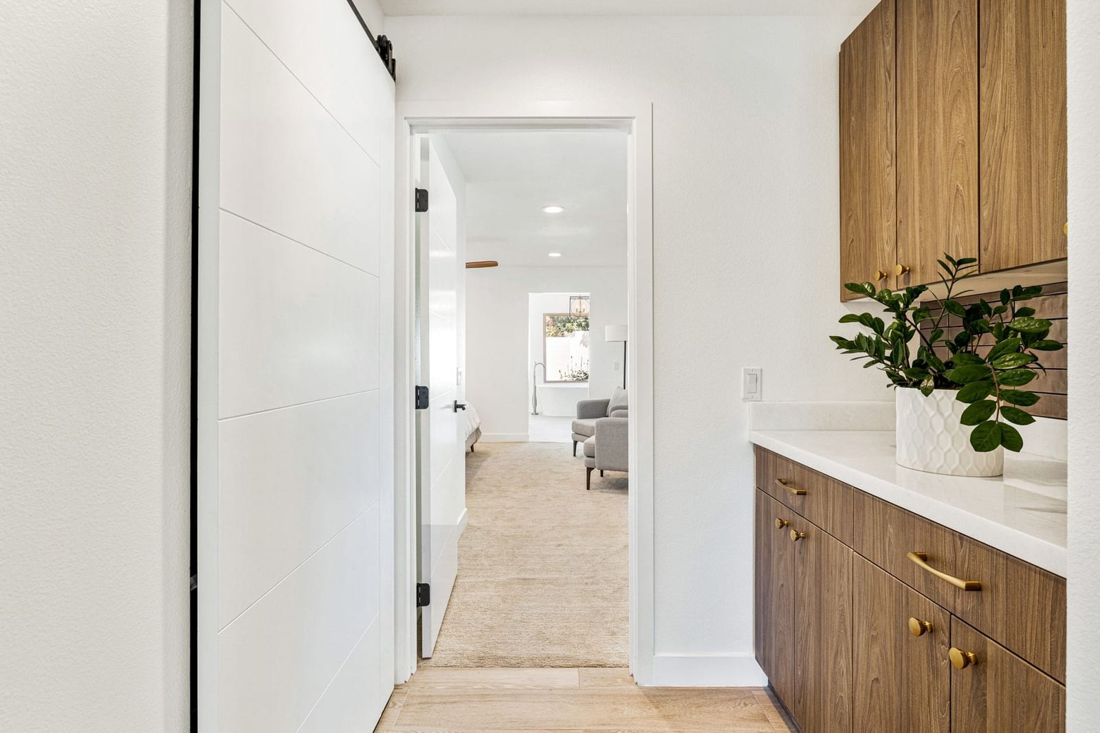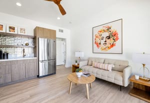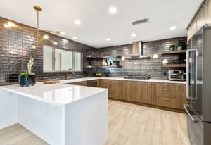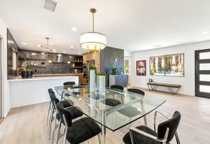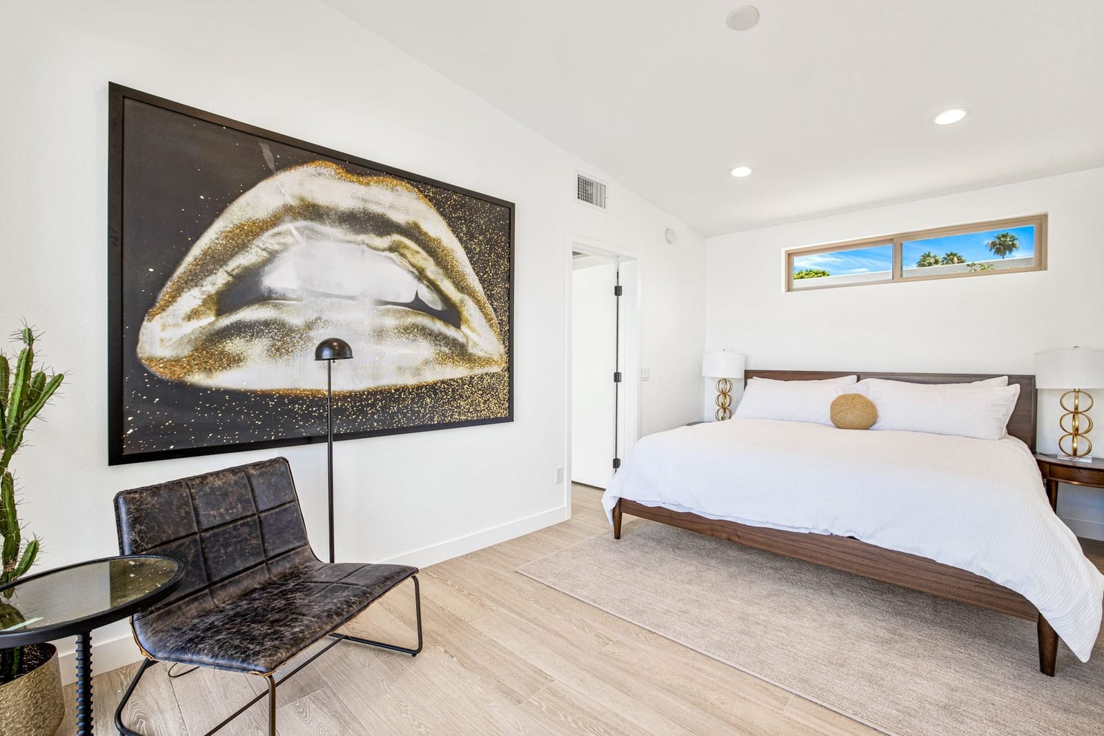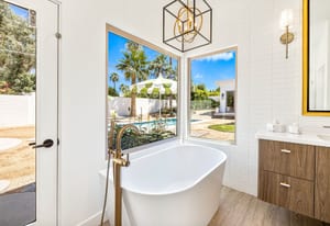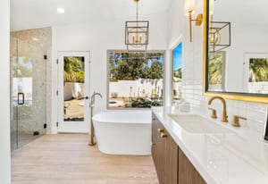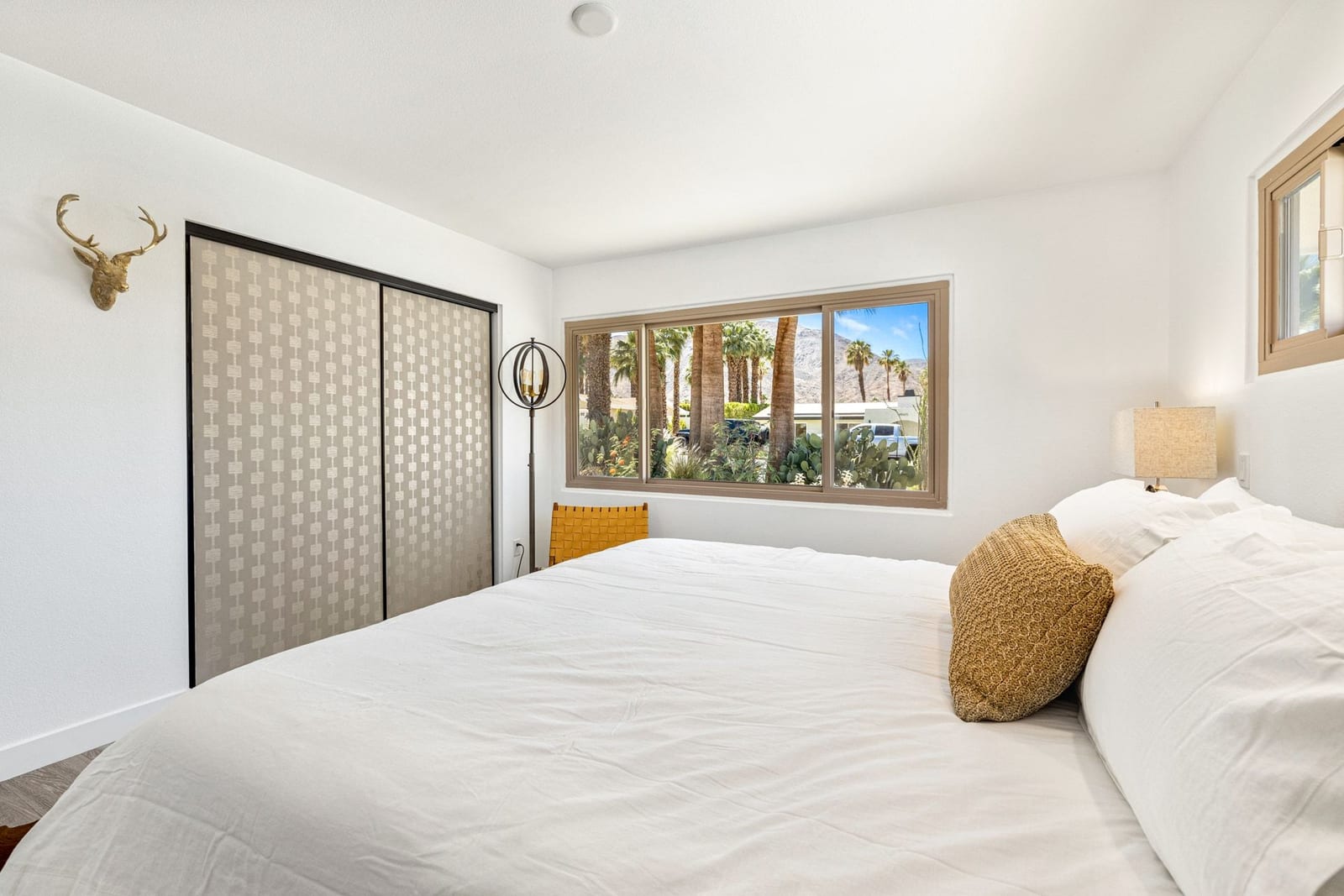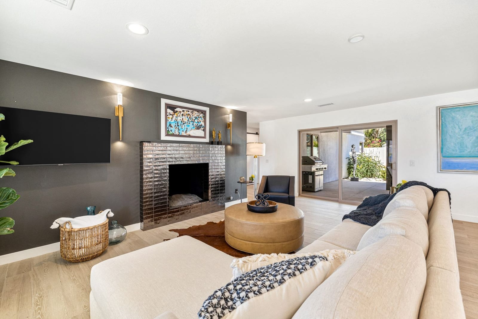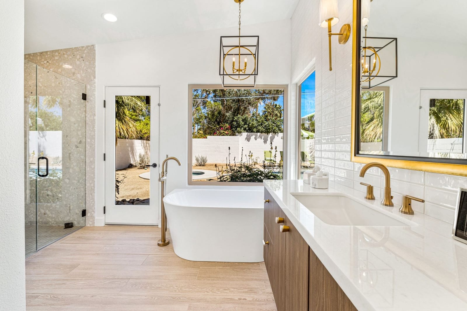 Moments from the boutiques, galleries, and dining of the famed El Paseo Shopping District, this beautifully reimagined mid-century ranch style home captures the essence of relaxed desert living on an expansive .35-acre parcel in South Palm Desert. Originally built in 1950 and thoughtfully renovated from top to bottom, the residence blends timeless architectural character with contemporary design and modern comfort. Clean lines, open living spaces, and abundant natural light create a welcoming atmosphere throughout the home. At the heart of the residence, the chef's kitchen has been completely transformed with professional grade appliances, sleek custom cabinetry, floating shelves, and a striking waterfall island designed for both everyday living and effortless entertaining. The open concept great room features a gas burning fireplace, designer tile flooring, and views that extend toward the surrounding mountains. The primary suite offers a tranquil retreat with a sitting area, walk-in closet, and a beautifully renovated bath featuring a soaking tub, dual vanities, and direct access to the pool and spa. Two additional bedrooms, including a private poolside casita connected by a breezeway, provide comfortable accommodations for guests while maintaining privacy and flexibility. Outdoors, the property unfolds as a private resort. A newly constructed pool and spa anchor the grounds, complemented by multiple lounging and dining areas, mature desert landscaping, and generous open space rarely found so close to El Paseo. Adjacent to the casita, a private putting green creates a playful and relaxed outdoor amenity, perfect for practicing your short game or entertaining guests. Adding to the home's versatility, the property offers a four-car garage and dedicated RV parking, providing exceptional space for vehicles, recreational equipment, or additional storage, a rare convenience in this coveted South Palm Desert location. Offering architectural charm, modern upgrades, and an exceptional location, this distinctive property presents a rare opportunity to experience the very best of desert living.