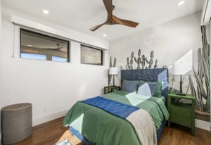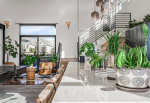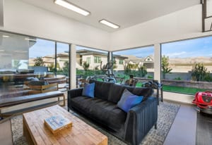 Welcome to 3051 Indy Court, an extraordinary modern retreat within the private, guard-gated racing community of Spring Mountain Raceway. Perfectly positioned beside the famed Charleston Peak Raceway circuit, this one-of-a-kind home offers views of high-performance cars in action and stunning desert sunsets. Designed with an edgy modern aesthetic, walls of glass flood the home with natural light, highlighting sleek architectural lines and high-end finishes. The thoughtfully designed floor plan includes three bedrooms, three bathrooms, and a large bedroom-style loft, comfortably sleeping up to 11 guests—ideal for a full race team. The chef’s kitchen features stunning countertops, commercial-grade appliances, and custom cabinetry. Full smart-home automation controls lighting, climate, entertainment, and security. The fully equipped garage functions as a professional racing pit. Large front and rear decks create seamless indoor-outdoor living with a full kitchen, hot tub, and cold plunge. Offered completely turnkey.